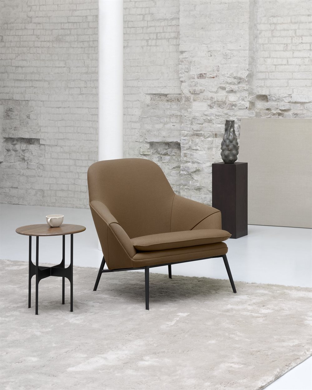 Hug lænestolen fra Wendelbo er en elegant og indbydende stol, der kombinerer moderne design med enestående komfort. Stolen har bløde, kurvede former og en dyb sædehynde, som indbyder til afslapning og hygge. De polstrede armlæn og ryglæn giver optimal støtte, hvilket gør Hug til det perfekte valg til ethvert opholdsrum.