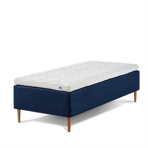Madrassens ramme er en 12 cm tyk træramme, der giver en ekstra stabil seng, som vil holde i mange år. Den er beklædt med lækkert møbelstof, der kommer i tre smarte og praktiske farver: Lysegrå, antracit eller blå.