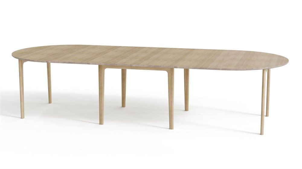 Den runde bordplade måler 130 cm. i diameter. En størrelse der både passer til mindre, kompakte boliger men samtidig giver masser af siddepladser. Bordet leveres med to matchende tillægsplader, og der kan tilkøbes yderligere to tillægsplader, så bordet i alt kan udvides med fire plader til en fuld længde på 330 cm. og plads til op til 14 personer.