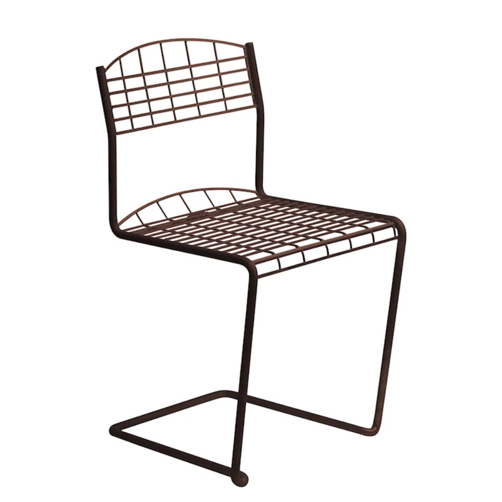 High Tech Chair i kastanjefarvet pulverlakeret stål er et smukt eksempel på moderne skandinavisk udemøbeldesign med rødder i tradition og kvalitet. Den stilfulde kastanjefarve tilføjer varme og karakter til dit udemiljø og skaber en harmonisk kontrast til grønne omgivelser og lyse træterrasser.