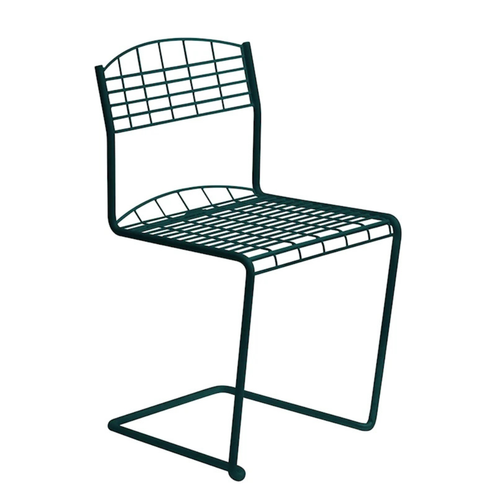 High Tech Chair fra Grythyttan forener funktionelt design med en moderne farvepalet. Her præsenteret i en elegant petrolblå pulverlakering, som giver stolen et raffineret og samtidig friskt udtryk, perfekt til den stilbevidste terrasse eller altan.