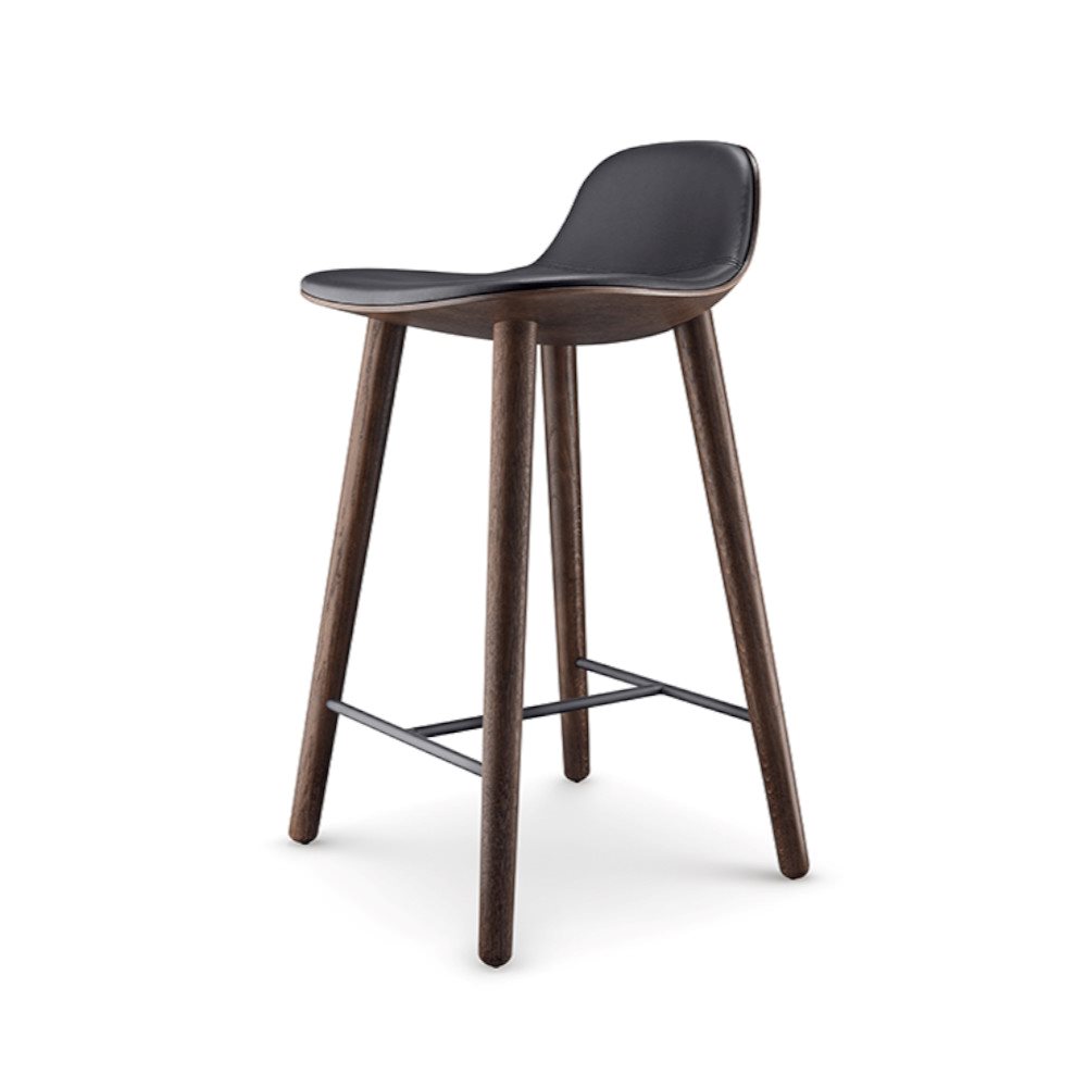 Stolens finér giver spisebordsstolen en smuk bøjet bagside, mens den bløde inderside gør barstolen behagelig at sidde i. Også i længere tid ad gangen. Stolen har nærmest en organisk form udenpå og blød indeni ligesom den asiatiske musling.