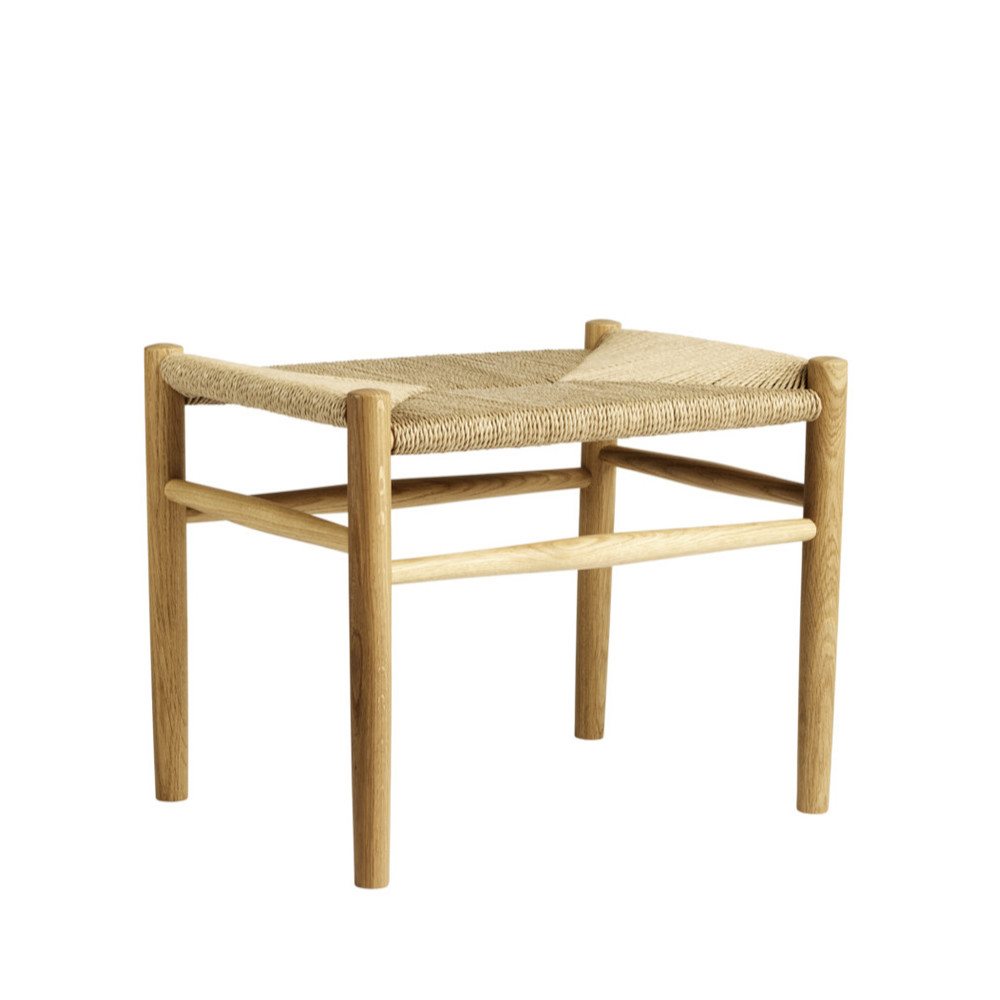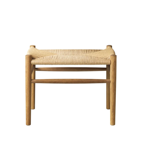 J83 skamlen har et bredt, flettet sæde af naturlige materialer og et solidt stel i lakeret eg. Det betyder, at den ikke kun ser godt ud den er også rigtig behagelig at sidde på. Det let fjedrende sæde holder dig blødt, når du læser avisen, strikker eller nyder en kop kaffe. Den stærke konstruktion gør skamlen brugbar til ekstra siddeplads, som fodskammel eller som en lille afsats til en plante eller din yndlingsbog.