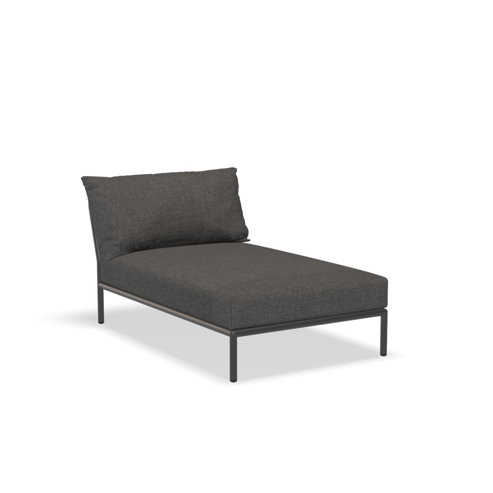 Det handler om niveau, at komme øje til øje med naturen, at forholde sig til horisonten og at få linjer og former til at bevæge sig op på et højere niveau! Det lette stel og de bløde puder skaber både kontrast og komfort og lokker med en afslappet loungestemning. LEVEL er en modulopbygget loungekollektion bestående af 2 sofamoduler et venstre og et højre en enkelt loungestol, en skammel, et sofabord og et sidebord, som gør det muligt at blande modulerne på mange forskellige måder.