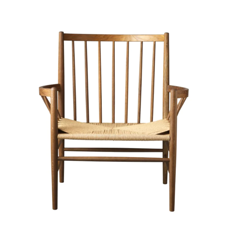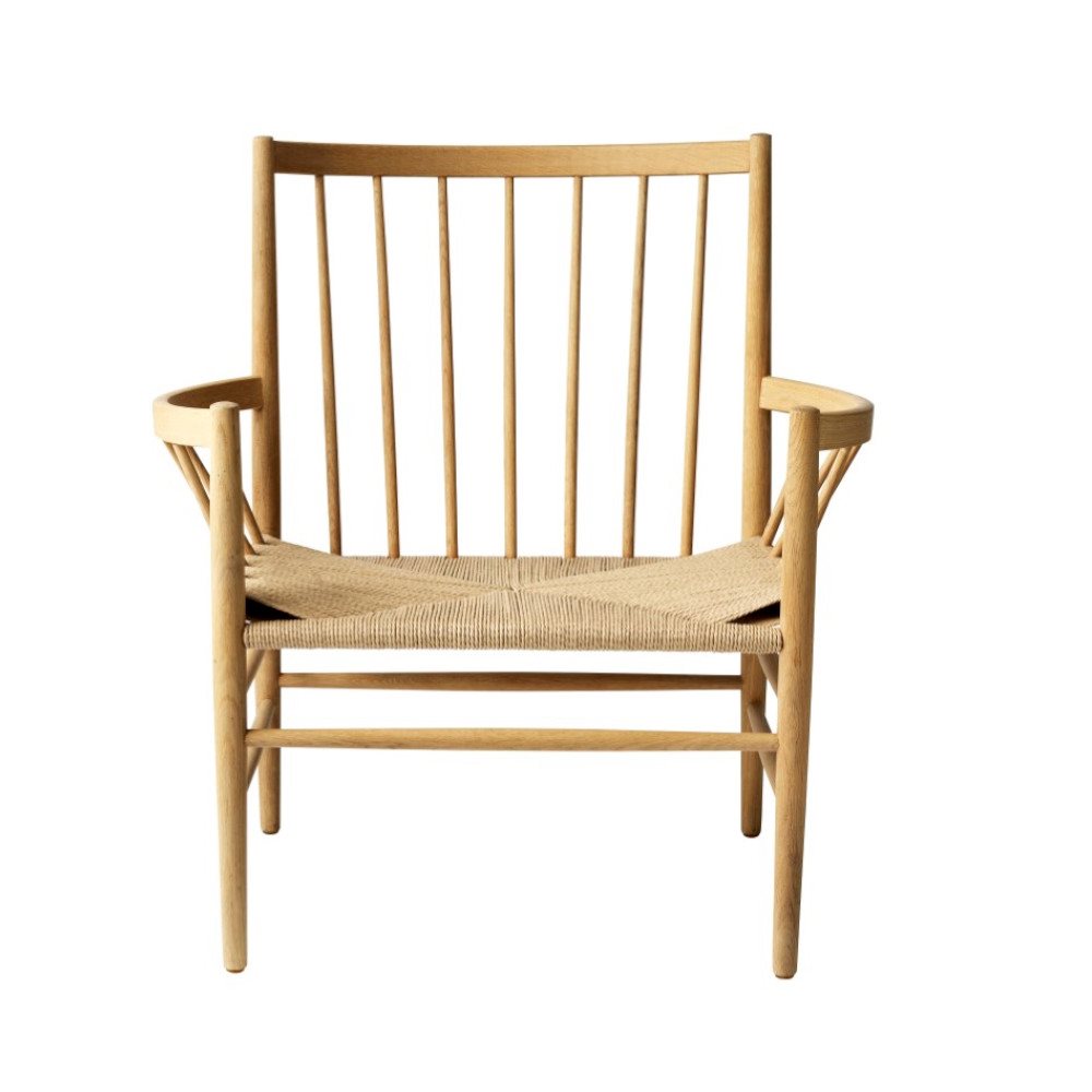 Med J82 loungestolen fra FDB Møbler får du mere end bare en stol - du får et ægte dansk møbelhistorie med hjem. Stolen er designet af Jørgen Bækmark i 1960erne og er en elsket designklassiker. Den karakteristiske tremmeryg giver et markant, men stadig elegant udtryk, som løfter stemningen i dit rum. Med lakeret egetræ og et smukt naturflet-sæde får du stolens håndværkstradition direkt ind i stuen.