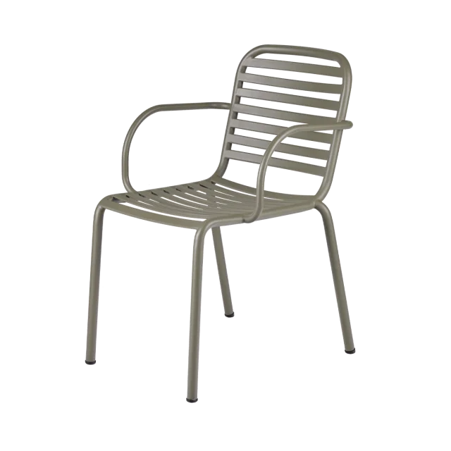 Havestolen er fremstillet i pulverlakeret rustfrit stål, hvilket gør den særdeles robust, vedligeholdelsesfri og modstandsdygtig over for det danske vejr. Materialet sikrer en lang levetid, samtidig med at stolen bevarer sit stilrene udtryk år efter år.