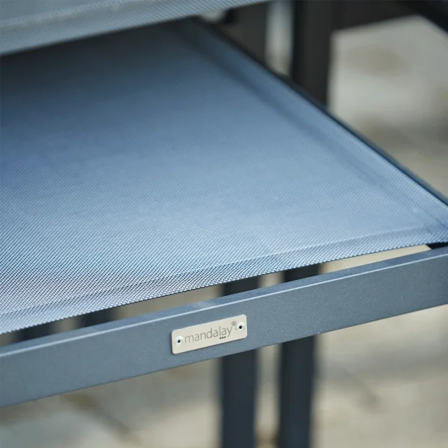 Det antracitfarvede stel giver sættet et moderne og ensartet udtryk, der nemt kan kombineres med øvrige havemøbler og accessories. Med sin robuste konstruktion og tidløse æstetik er dette havesæt skabt til mange års brug udendørs.