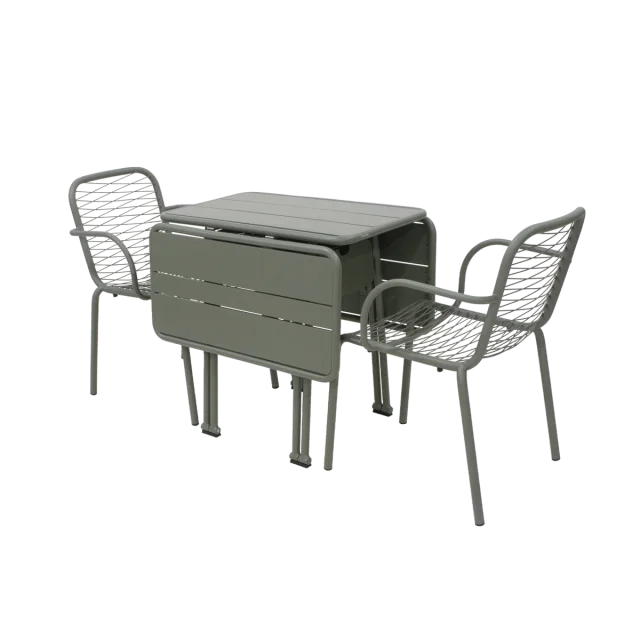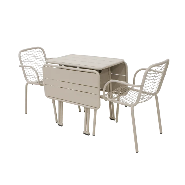 Mandalay Ivy Wire havesæt er et kompakt og funktionelt havemøbelsæt, der er skabt til altaner, små terrasser og andre mindre uderum. Sættet kombinerer et fleksibelt klapbord med stilrene Ivy Wire havestole og giver en praktisk løsning, hvor design, funktionalitet og holdbare materialer går hånd i hånd.