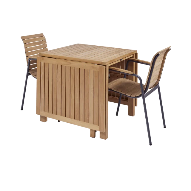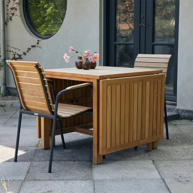 Det naturlige teaktræ bidrager til et tidløst look, som nemt kan kombineres med andre havemøbler og accessories i uderummet. Samtidig sikrer træets kvalitet, at sættet kan holde i mange år med den rette pleje.