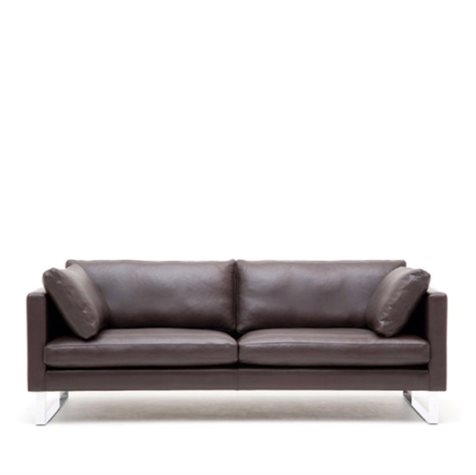 Sofaen kommer med runde eller firkantede ben i eg eller rustfri stål.