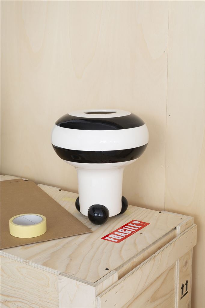 Raawii Mushroom Vase er designet af Nicholai Wiig Hansen og kendetegnes af sin skulpturelle, svampeinspirerede form, der giver et markant og moderne udtryk i indretningen. Vasen er håndlavet i stentøj og glaseret med en smuk, blank overflade, som både fremhæver formen og tilføjer et elegant, grafisk element til rummet.