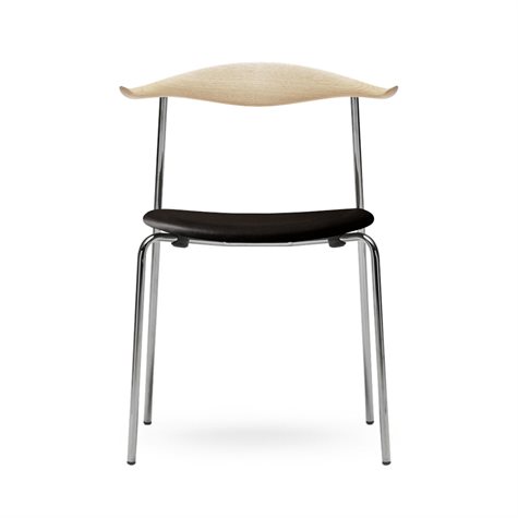 CH88P spisebordsstol i eg med lædersæde er et eksempel på, hvordan Hans J. Wegners udforskede brugen af materialer. Den elegante kombination af polstring, træ og stål viser Hans J. Wegners evne til at få minimalistiske former til at fremstå bløde og behagelige.