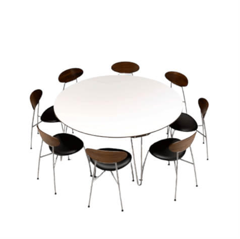 Naver Collection - GM 6683 rundt spisebord med udtræk og hvid corian-top, 140 cm diameter