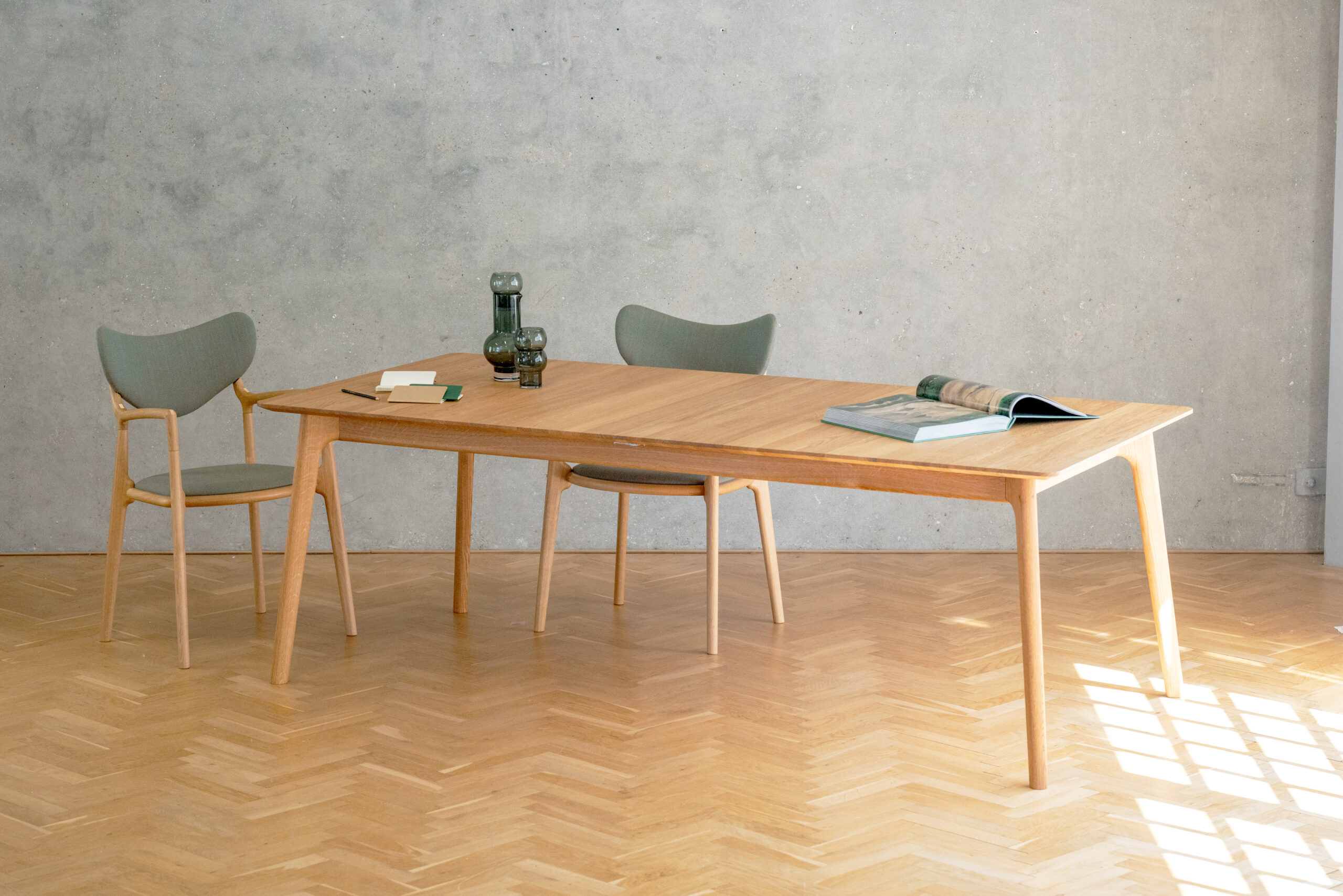 Salon-serien er kendetegnet ved organiske linjer og et minimalistisk formsprog, hvor egetræets naturlige struktur får lov at træde frem. Resultatet er et spisebord, der både føles eksklusivt og varmt – skabt til daglig brug og mange års samvær.