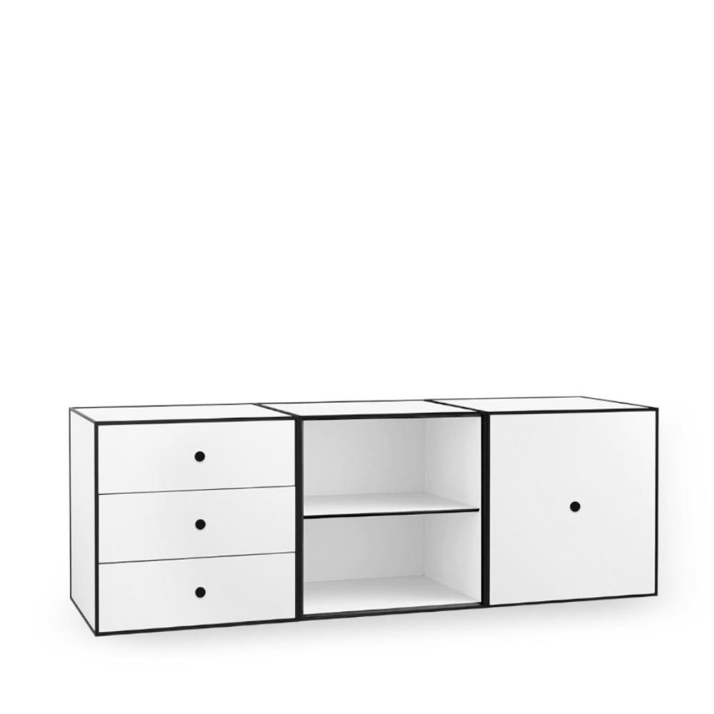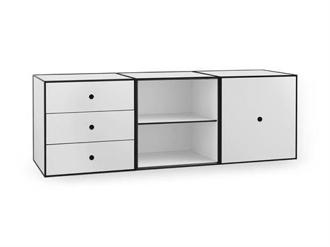 Frame 49 Trio er et fleksibelt opbevaringsmøbel lavet i smarte firkantede rammer. Frame-modulerne kan hænges op på væggen eller stå på gulvet. Der er uendelig kombinationsmuligheder.