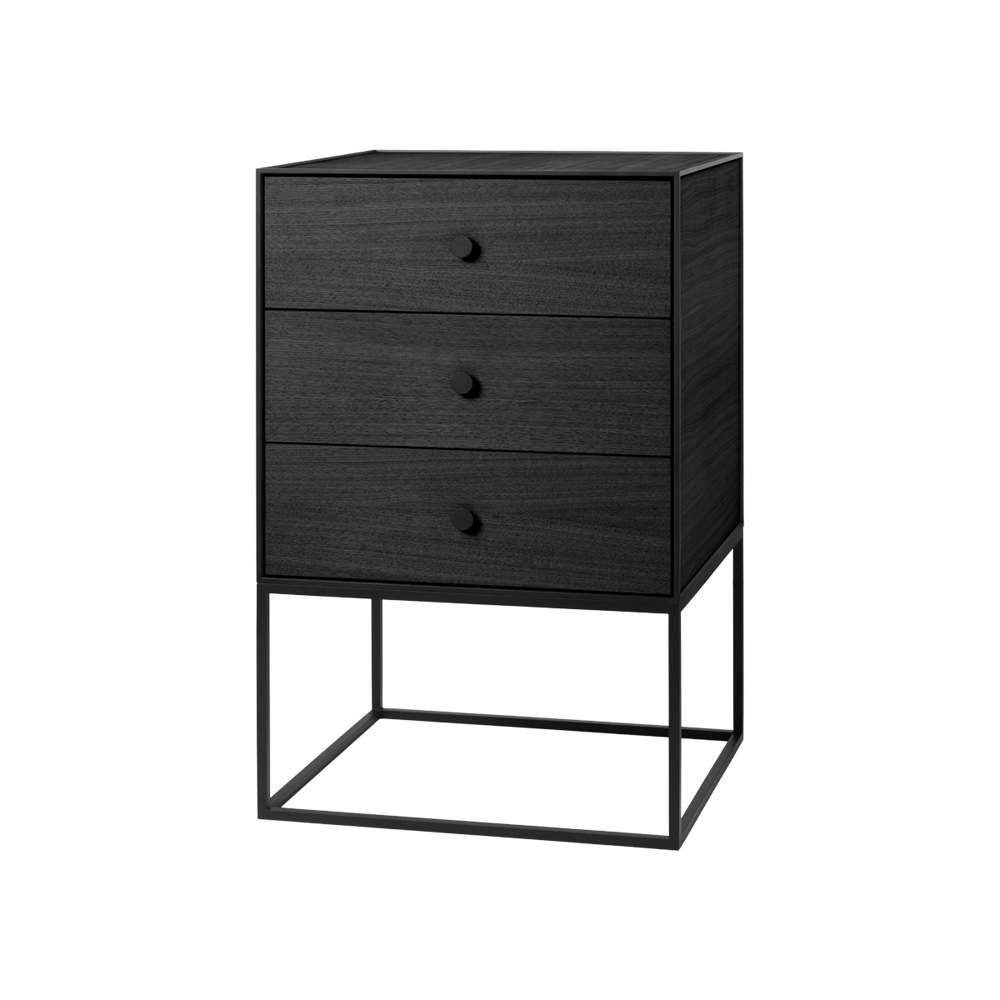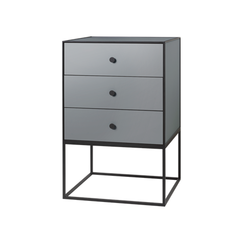 Frame 49 Sideboard med tre skuffer inkl. sokkel er et fleksibelt opbevaringsmøbel lavet i smarte firkantede rammer. Frame-modulerne kan hænges op på væggen eller stå på gulvet. Der er uendelig kombinationsmuligheder.