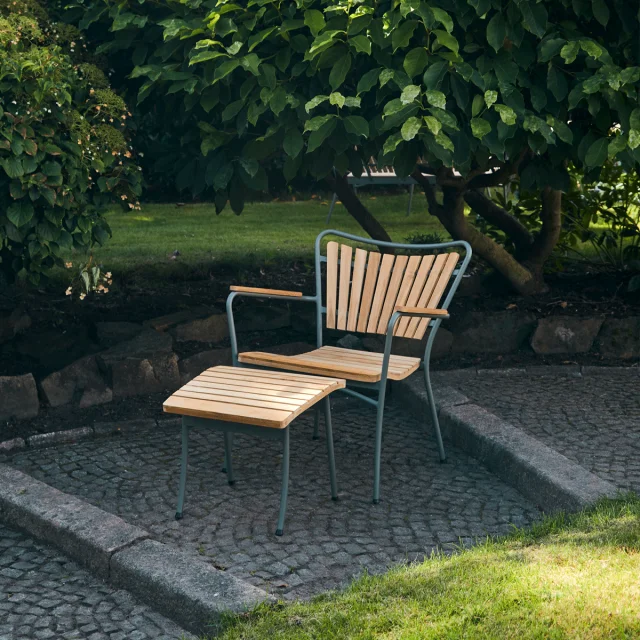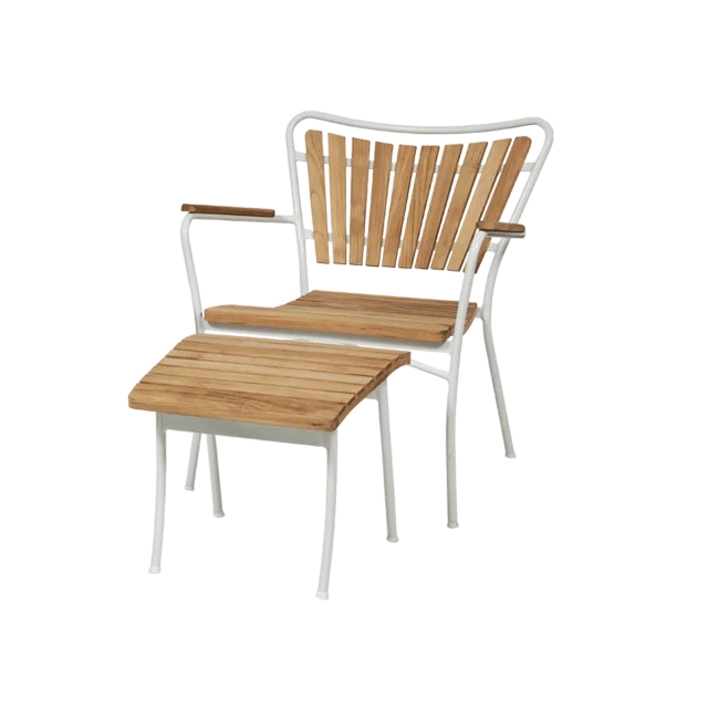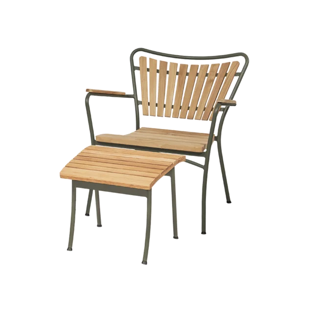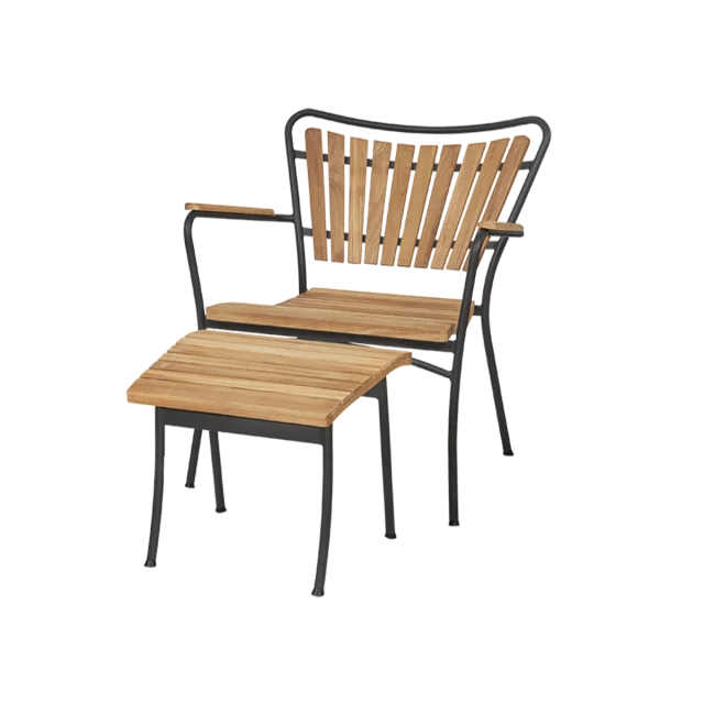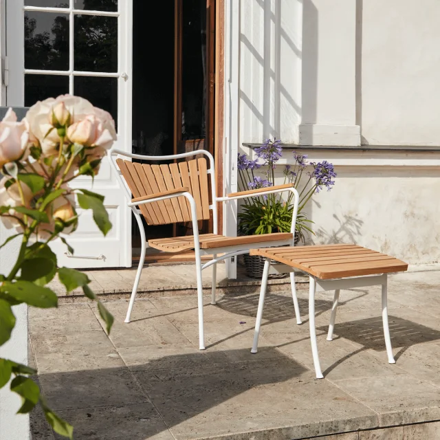 Møblerne er fremstillet i bæredygtig indonesisk plantageteak kombineret med stel i pulverlakeret aluminium. Denne materiale kombination giver et let og elegant udtryk samtidig med, at møblerne er robuste og vejrbestandige. Teaktræet vil med tiden udvikle en smuk naturlig patina, hvis det ikke behandles, hvilket understreger møblernes klassiske udtryk.