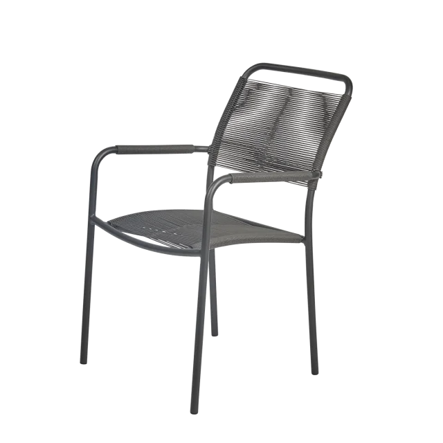 Den ergonomiske udformning og fleksible flet giver en behagelig siddeoplevelse, mens den stabelbare konstruktion gør stolen praktisk i hverdagen og nem at opbevare.