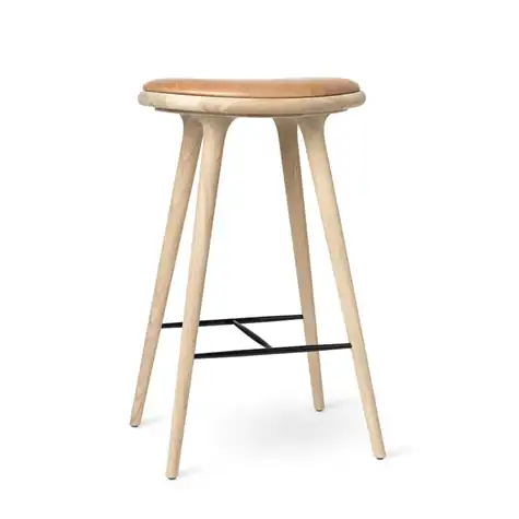 Mater High Stool er designet af den danske arkitektduo Space Copenhagen og betragtes som en ny dansk klassiker. Med sin organiske, men minimalistiske stil er denne barstol velegnet til både private hjem og kommercielle miljøer. Træet er FSC®-certificeret eg med en sæbebehandlet finish, og sædet er betrukket med ægte læder.