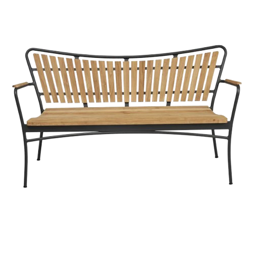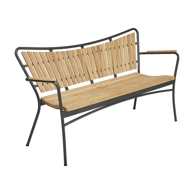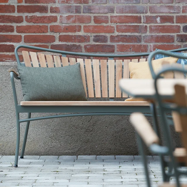 En klassisk og stilren havebænk, der kombinerer dansk designtradition med robuste materialer til udendørs brug.