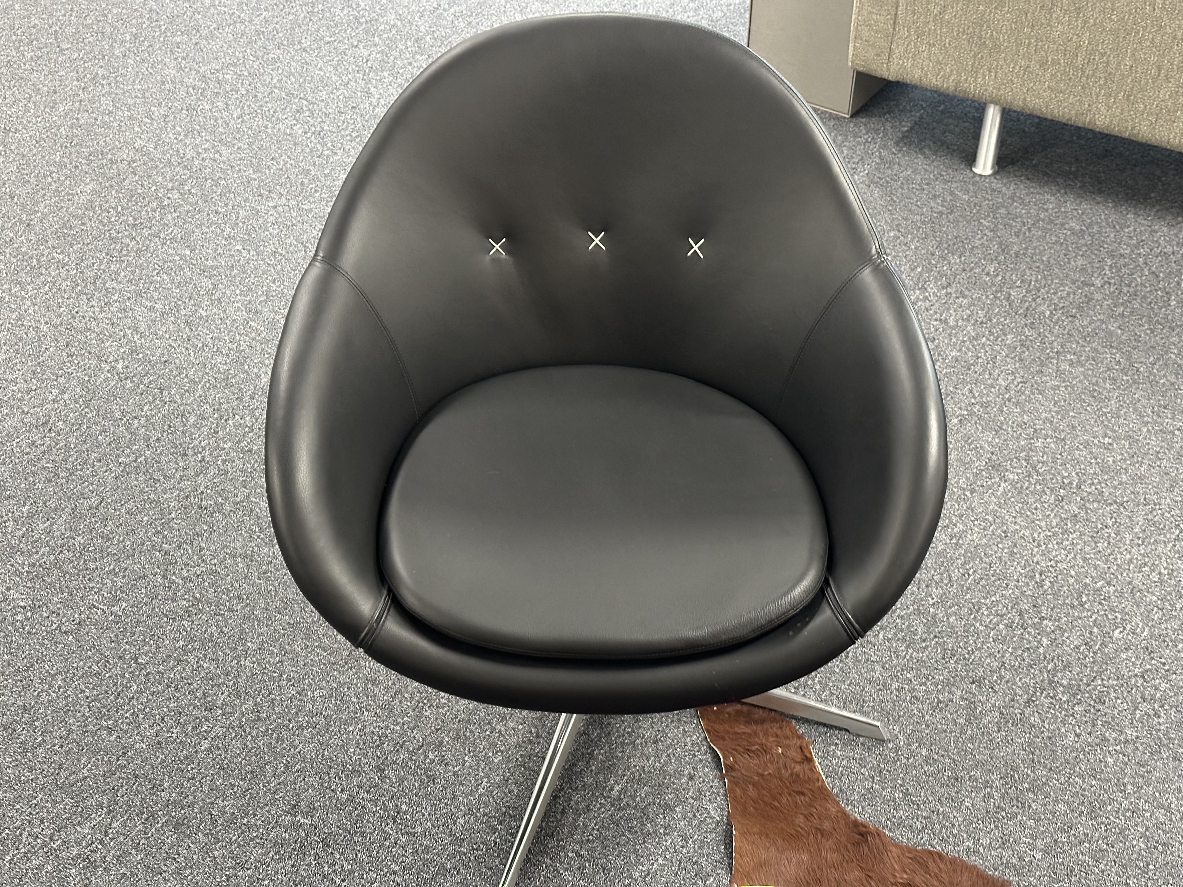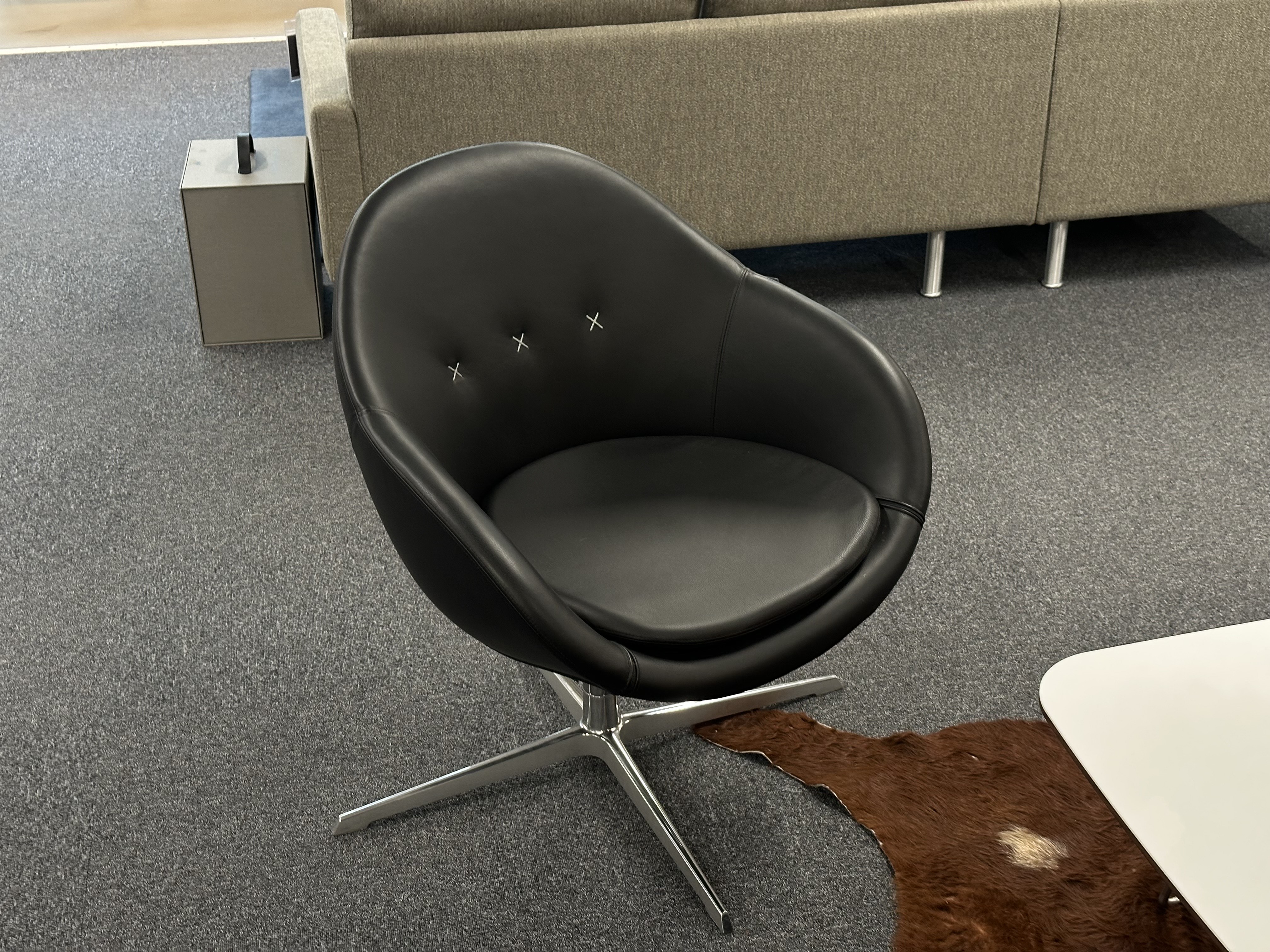 Denne udstillingsmodel er betrukket med tekstil i gruppe 5 noir kombineret med sort læder, som tilsammen skaber et elegant, tidløst og maskulint udtryk. Det bløde tekstil giver en behagelig siddeoplevelse, mens læderdetaljerne tilfører et eksklusivt finish, der løfter både komfort og visuel appeal.