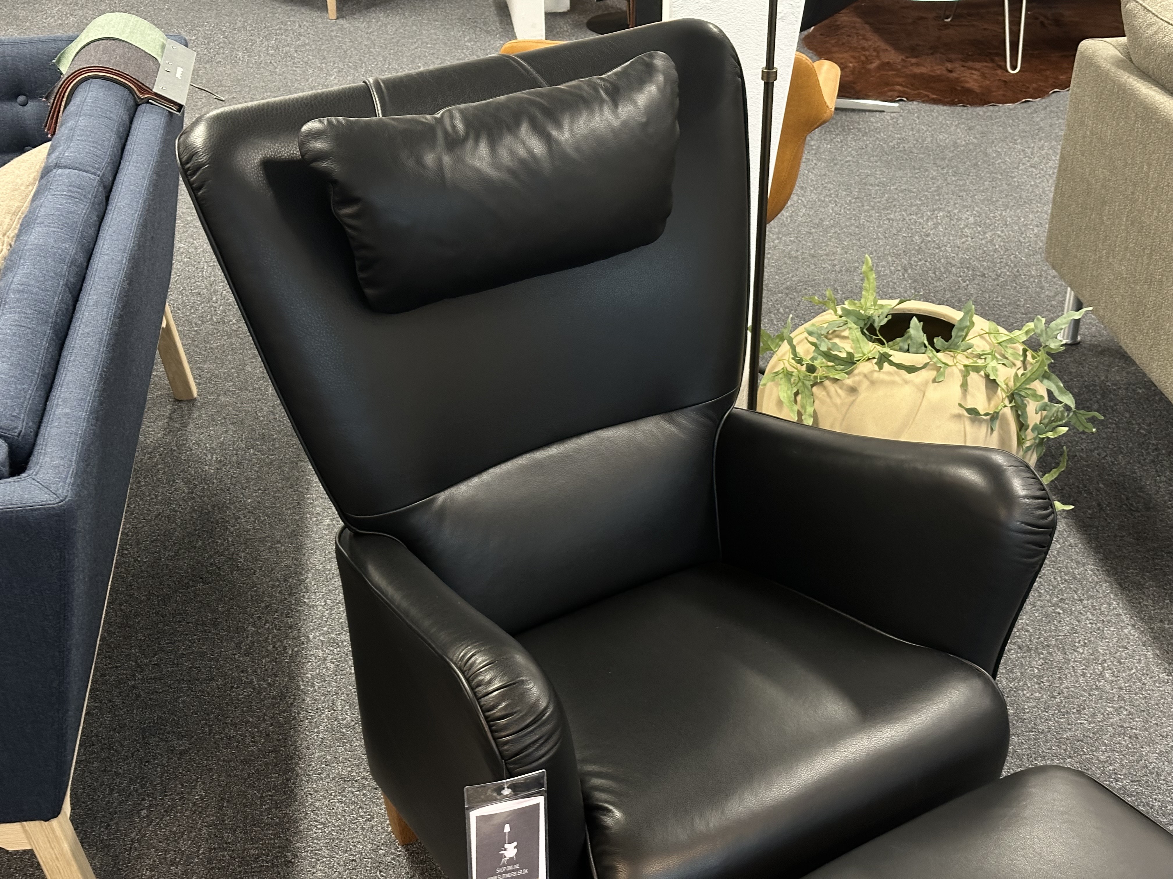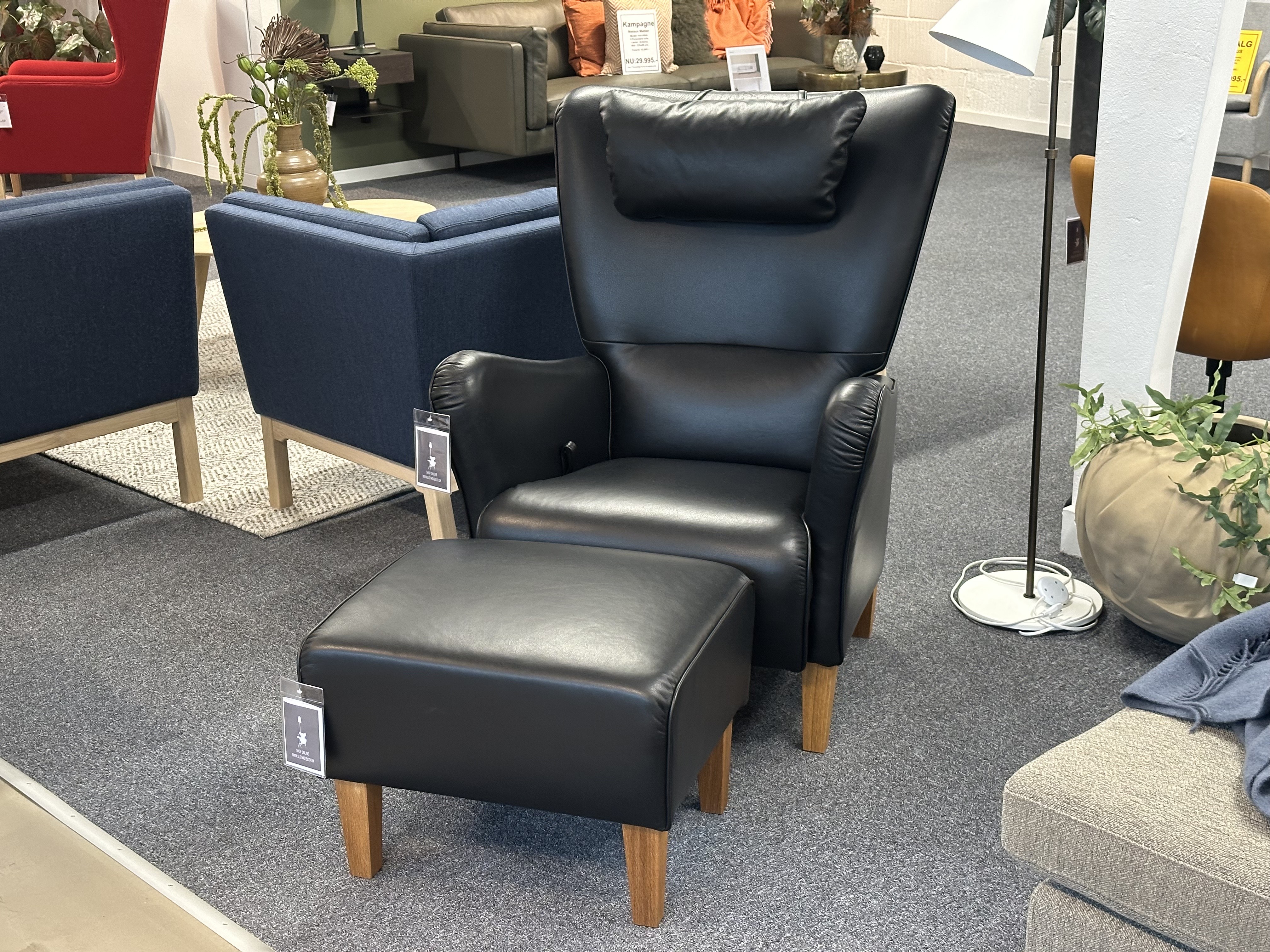 UDSTILLINGSMODEL – Swedese Stepp Easy Chair (sort læder + eg olie)
