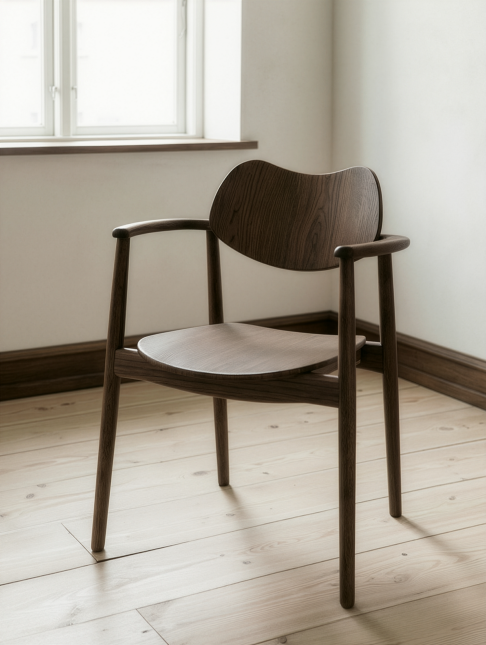 Stolen har et let og harmonisk udtryk med en velafbalanceret form, der gør den velegnet omkring spisebordet, men også smuk som enkeltstående stol i indretningen. Designet kombinerer komfort og stabilitet, så den fungerer godt i hverdagen, samtidig med at den bevarer et stilrent og tidløst udtryk.
