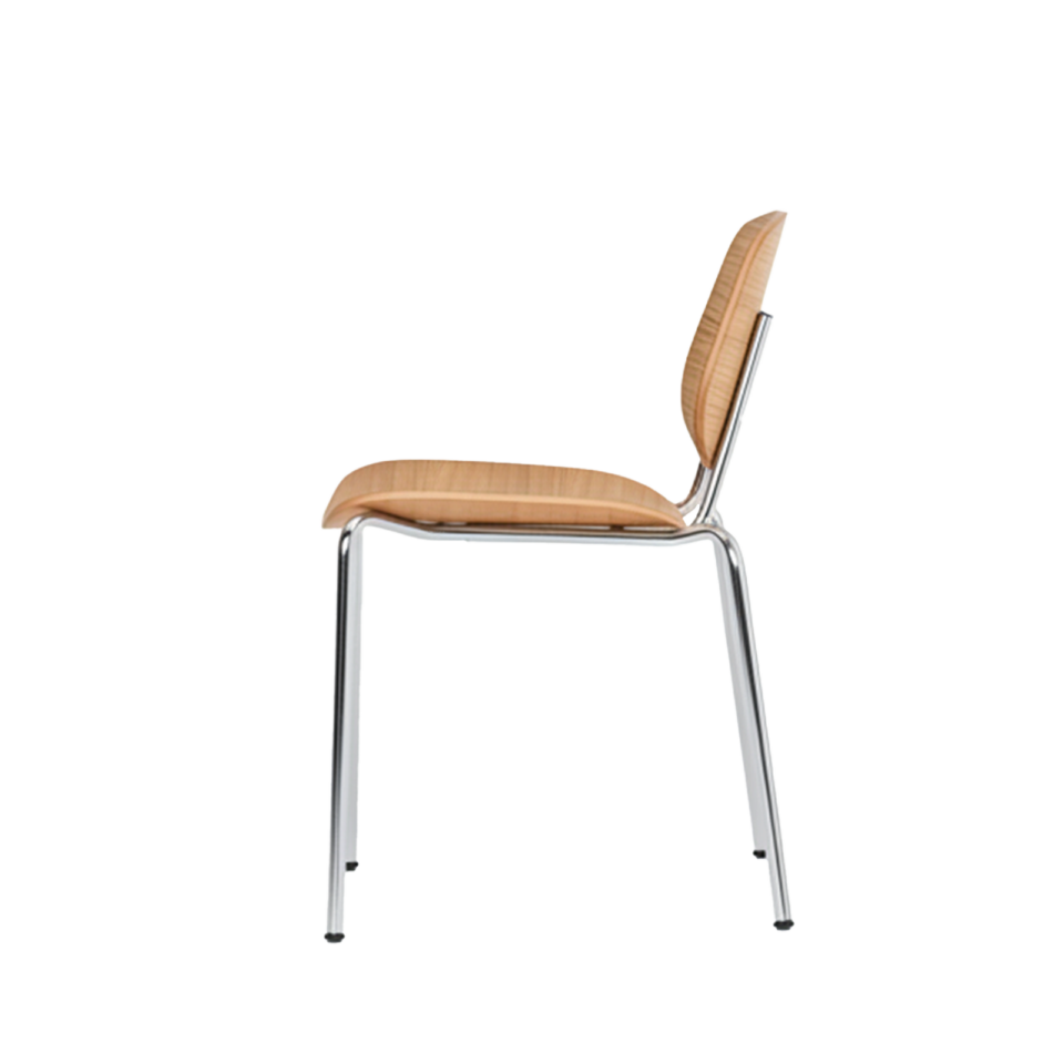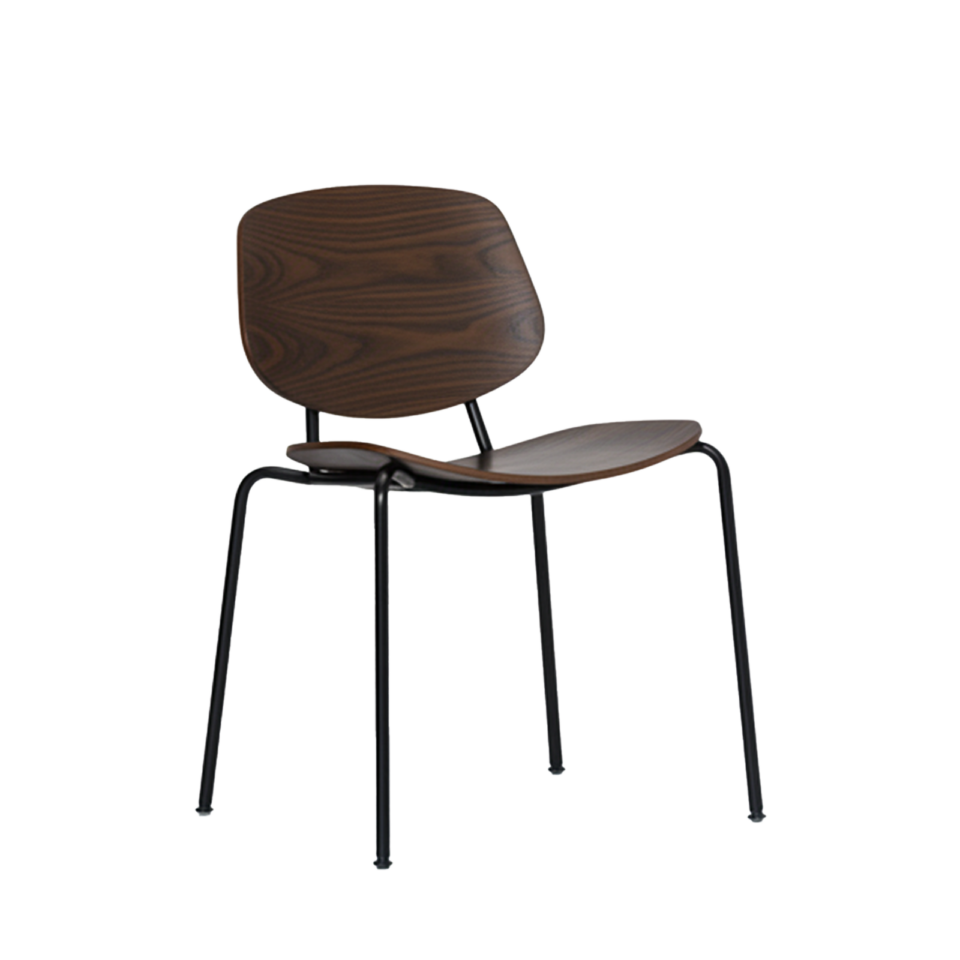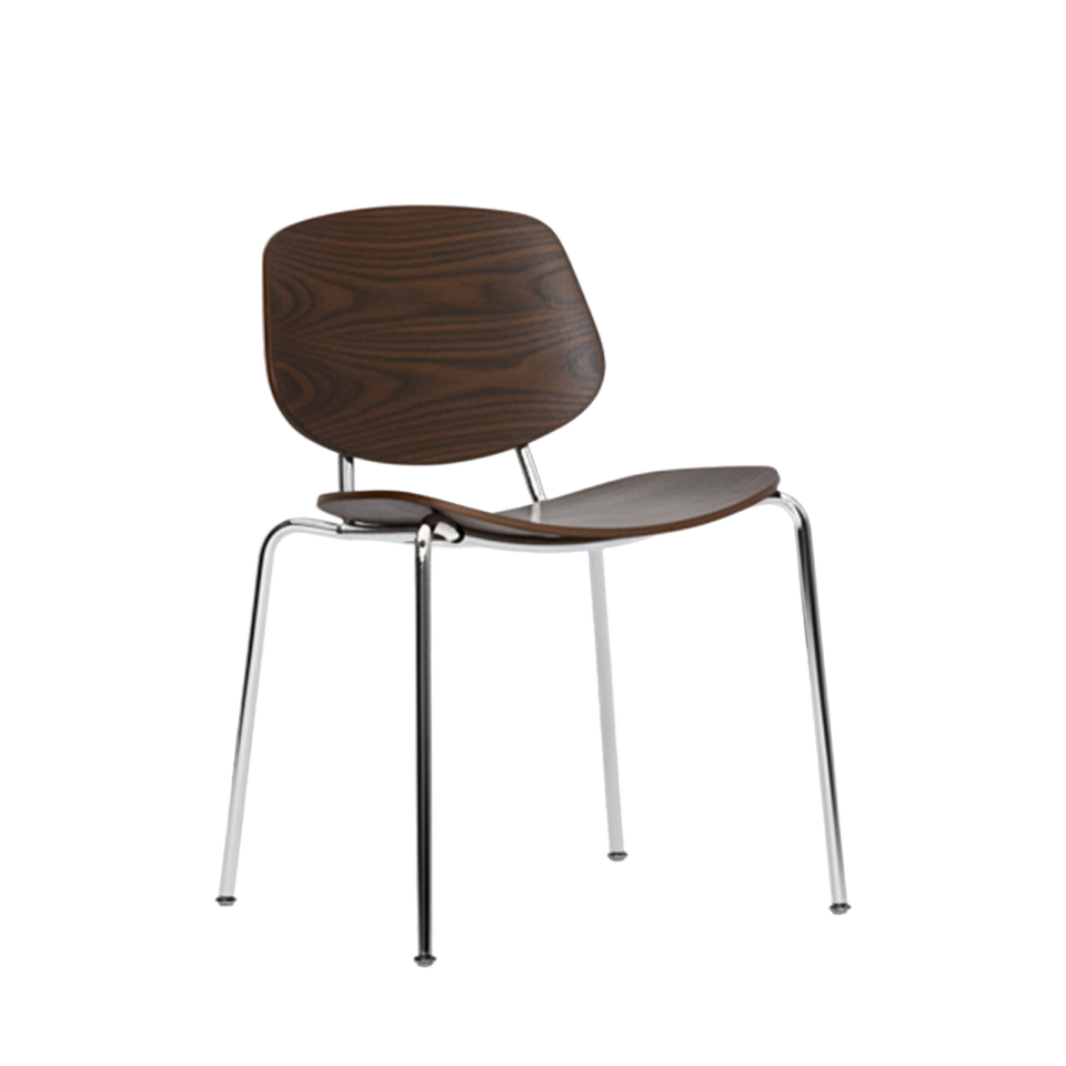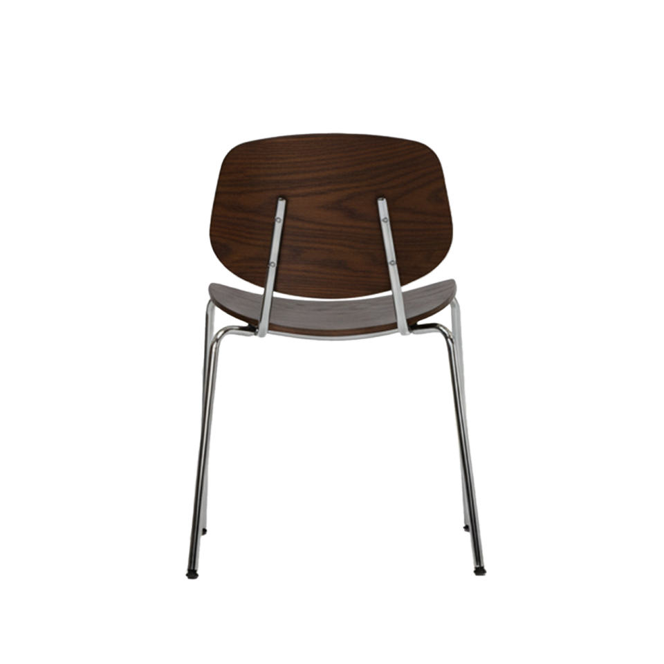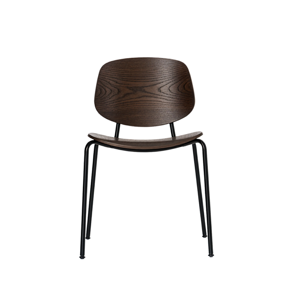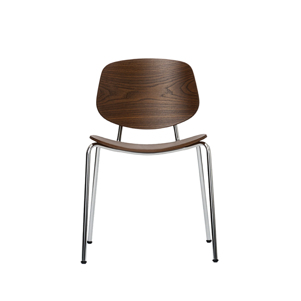 Denne kombination af træ og stål giver stolen både varme og grafisk præcision, så den fungerer til både hverdagsbrug og mere formelle spiseoplevelser.