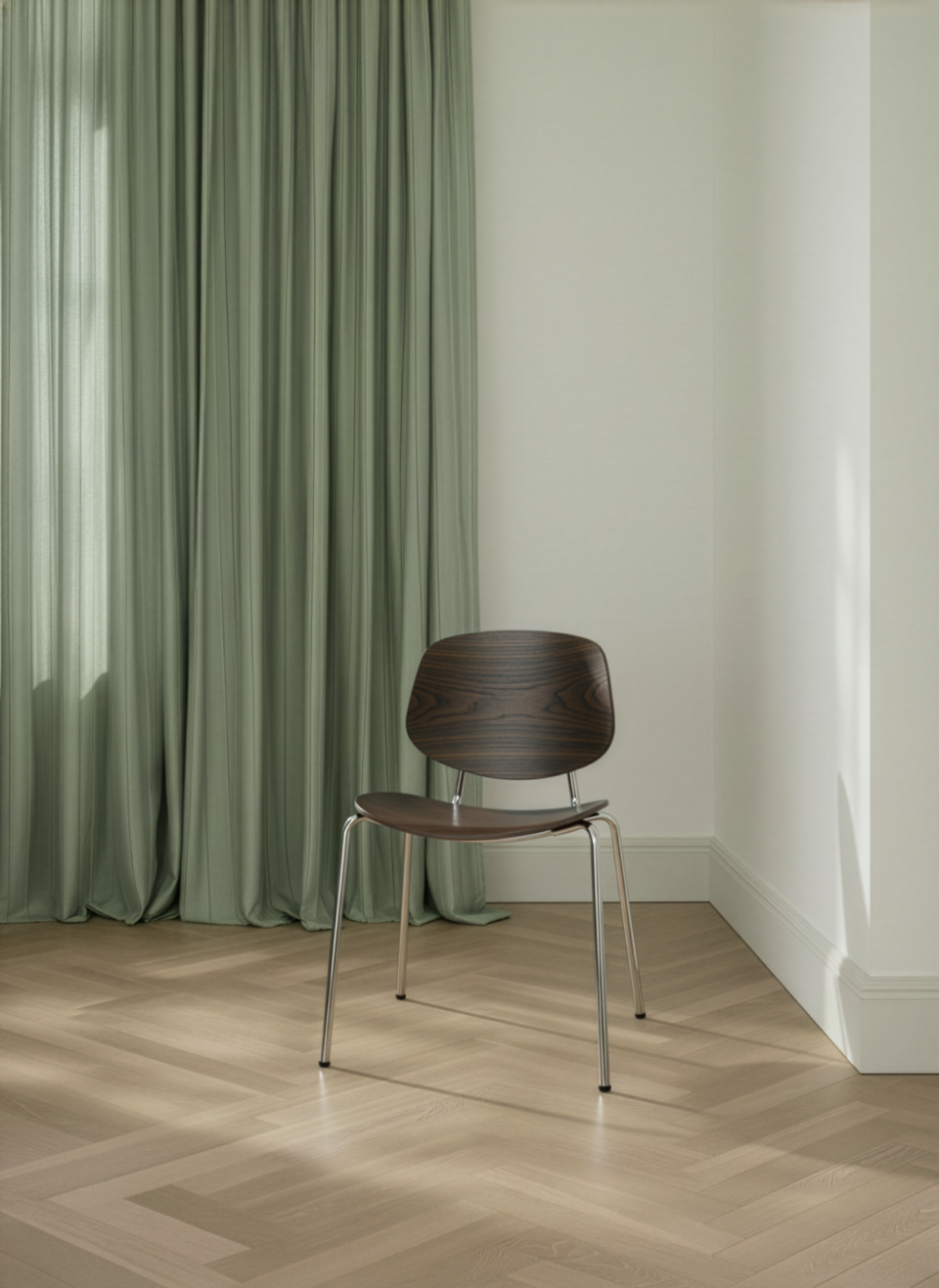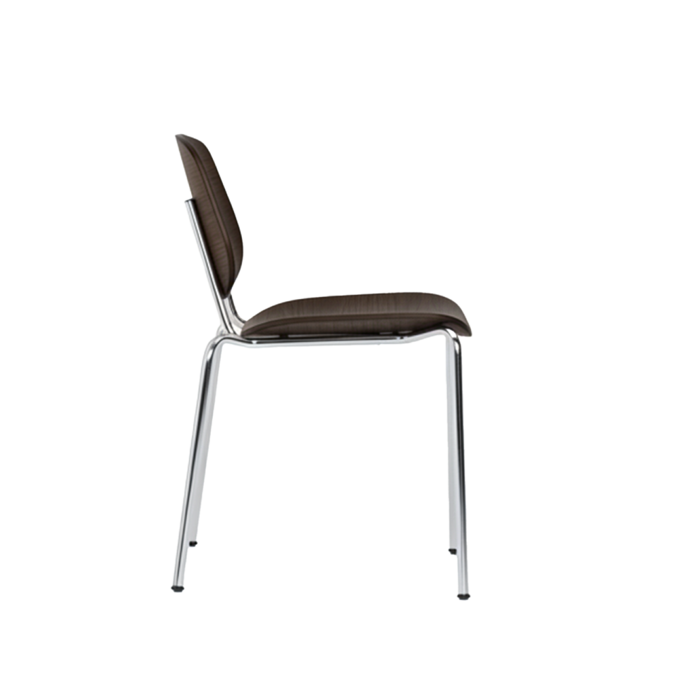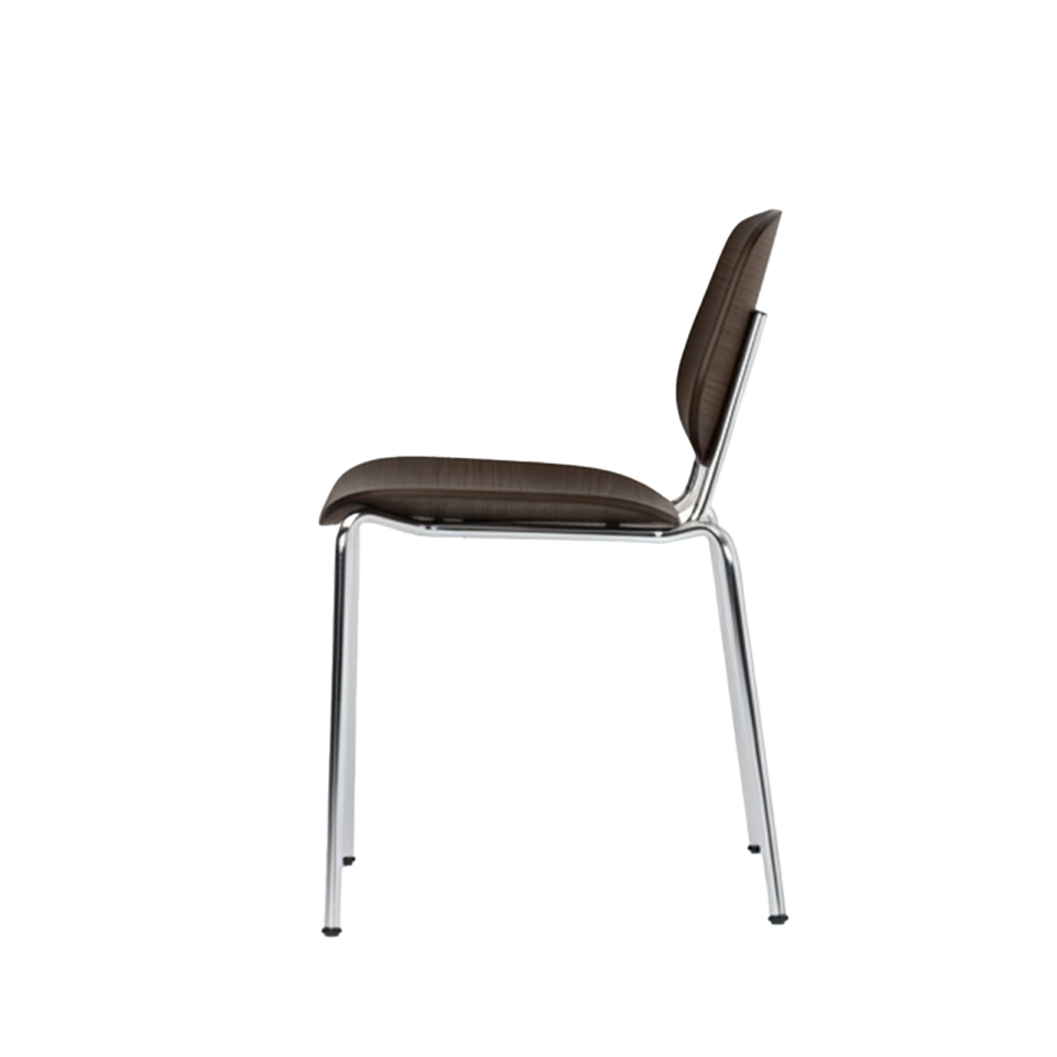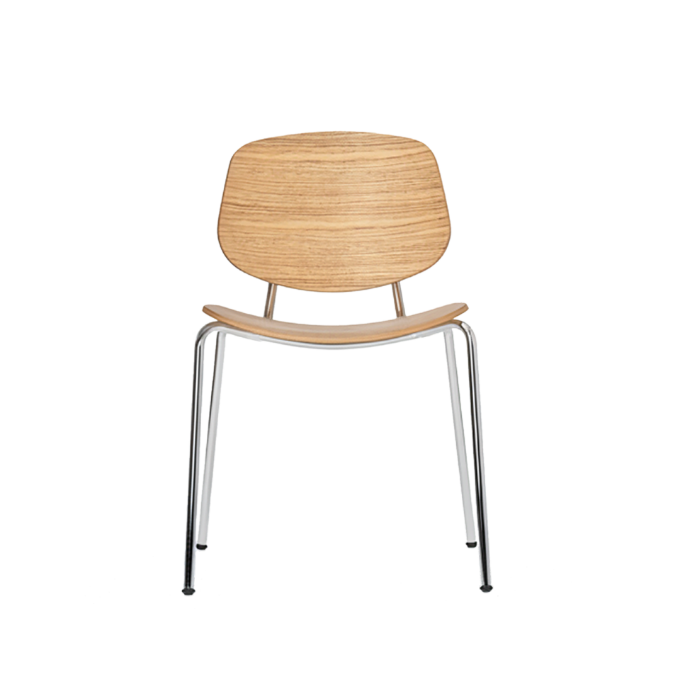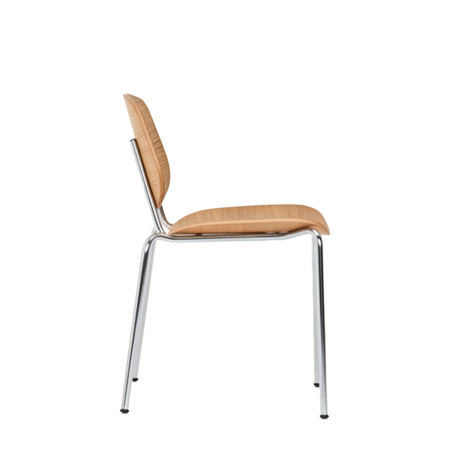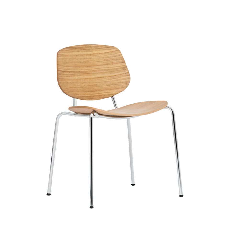 Denne kombination af træ og stål giver stolen både varme og grafisk præcision, så den fungerer til både hverdagsbrug og mere formelle spiseoplevelser.