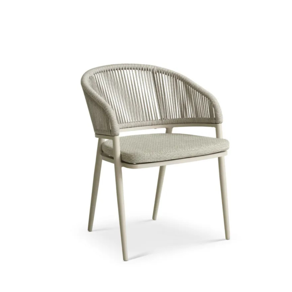 Materialerne er udvalgt med henblik på holdbarhed og minimal vedligeholdelse, så stolen kan bruges sæson efter sæson. Resultatet er en praktisk og elegant havestol, der både fungerer i mindre uderum og omkring større spisepladser på terrassen.