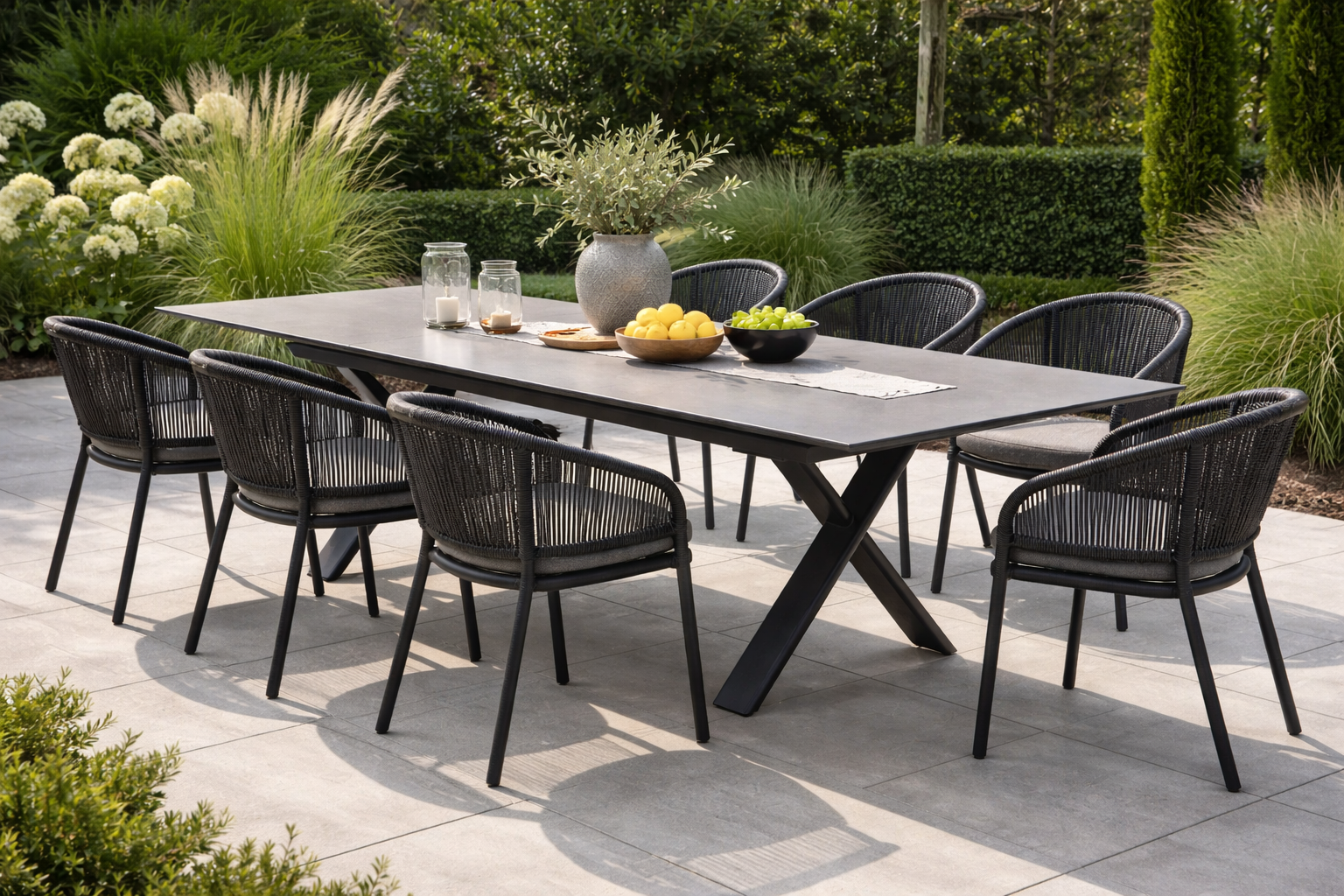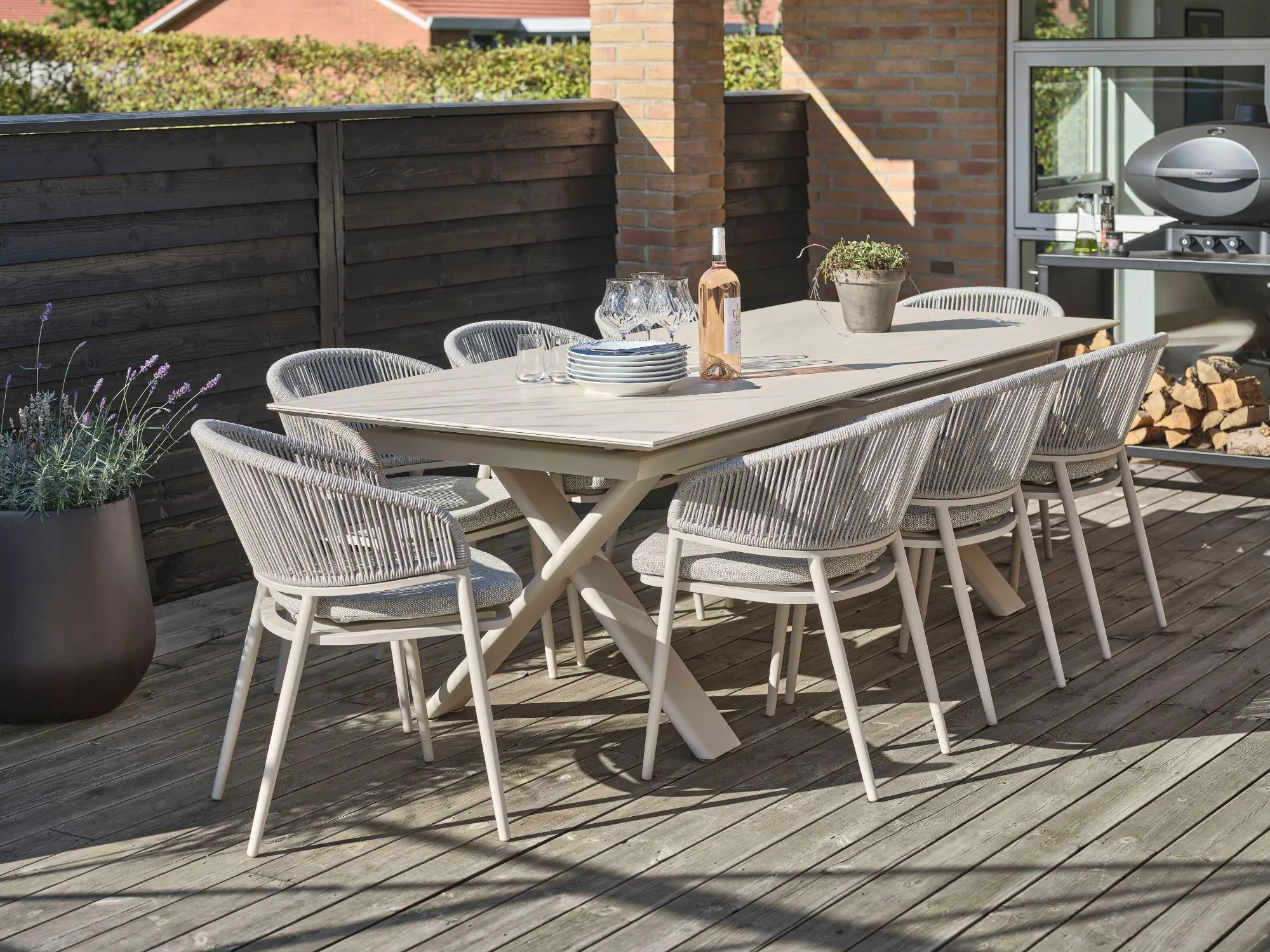 Et rummeligt og fleksibelt havebord, der giver god plads til både hverdagens måltider og større sammenkomster.