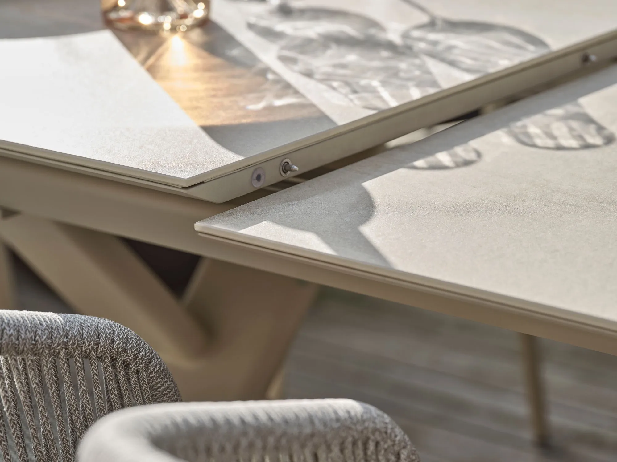 Bordet er designet med en udtræksfunktion, som gør det muligt at forlænge bordet efter behov. Det giver ekstra plads, når der kommer gæster, samtidig med at bordet kan holdes mere kompakt til daglig brug. Det enkle og moderne formsprog gør bordet let at kombinere med mange typer havestole og uderum.