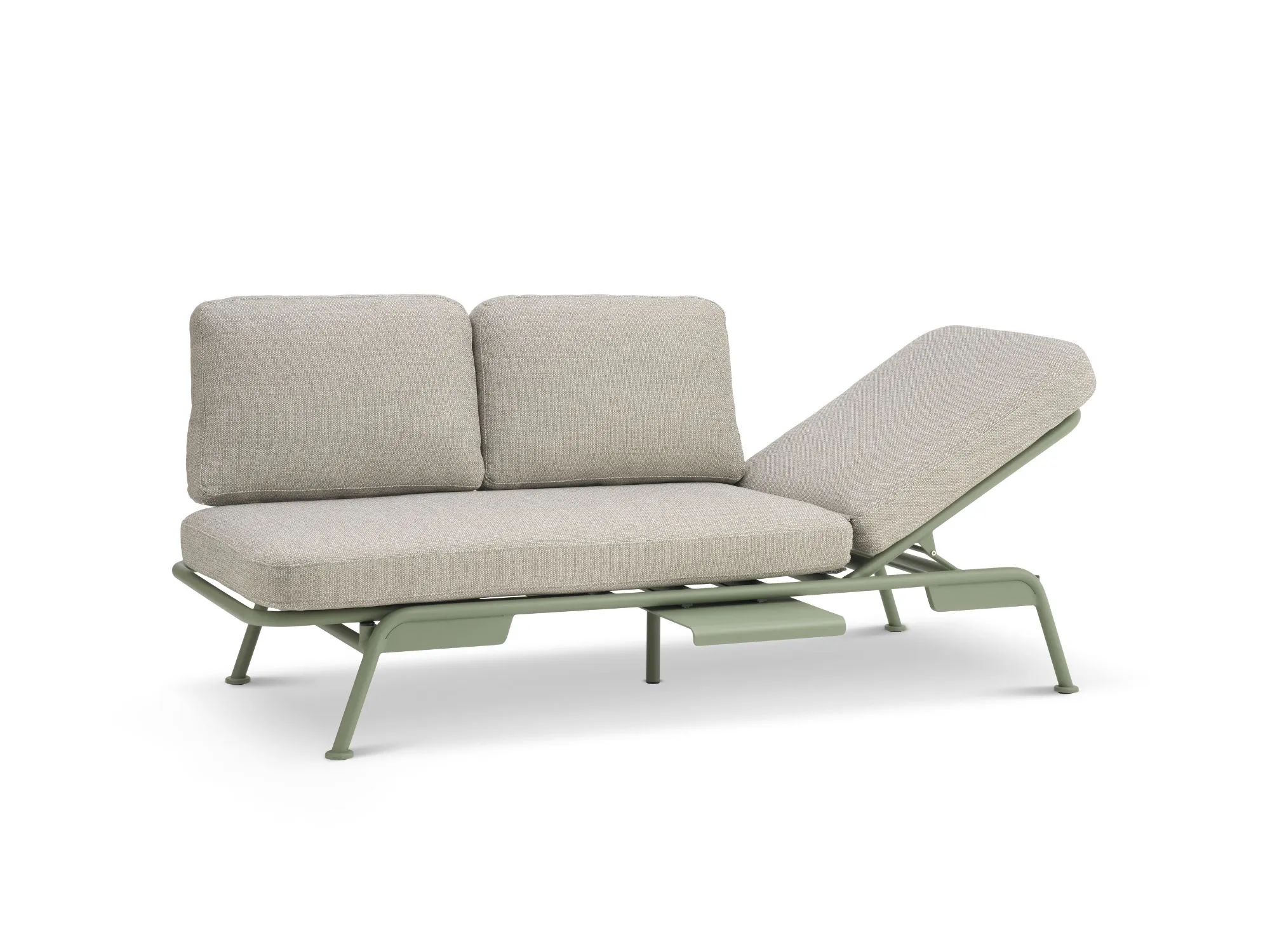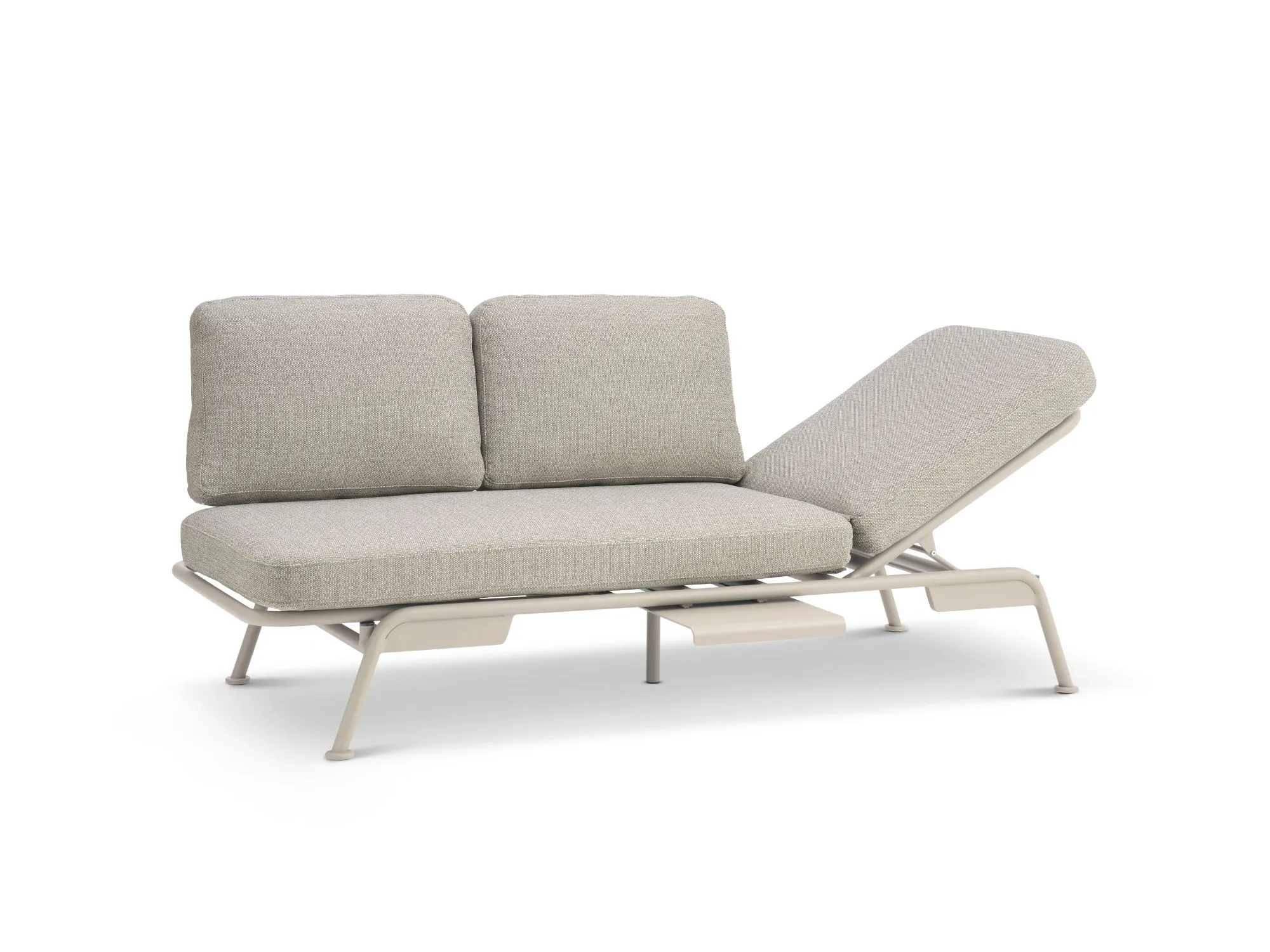 En fleksibel og komfortabel loungesofa, der kombinerer moderne design med praktiske funktioner til terrassen eller haven.