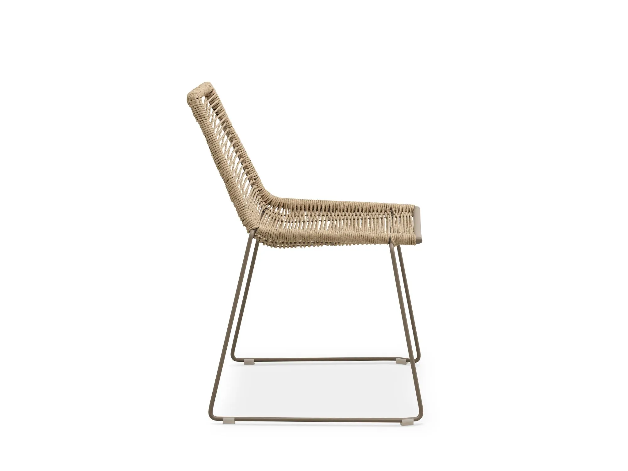 Sæde og ryg er udført i flettet wicker, som giver stolen et naturligt og tidløst udtryk samtidig med, at komforten er høj. Det slanke stel i aluminium giver stolen et let udtryk og gør den både robust og vejrbestandig til udendørs brug.