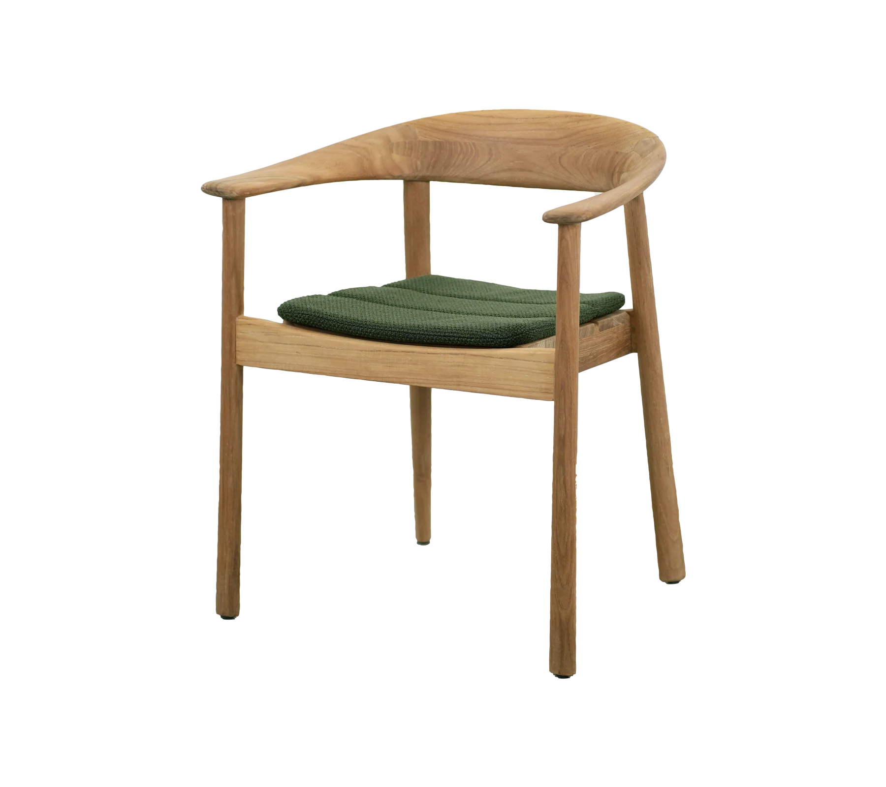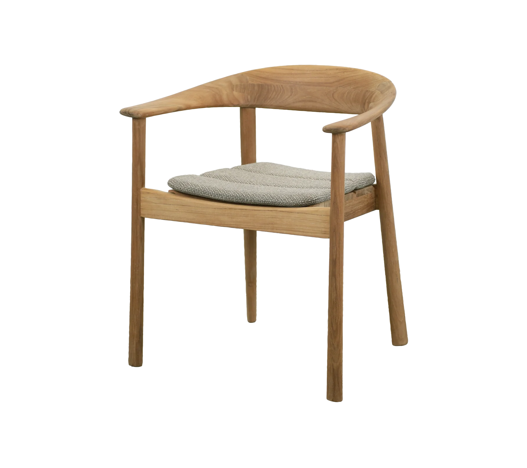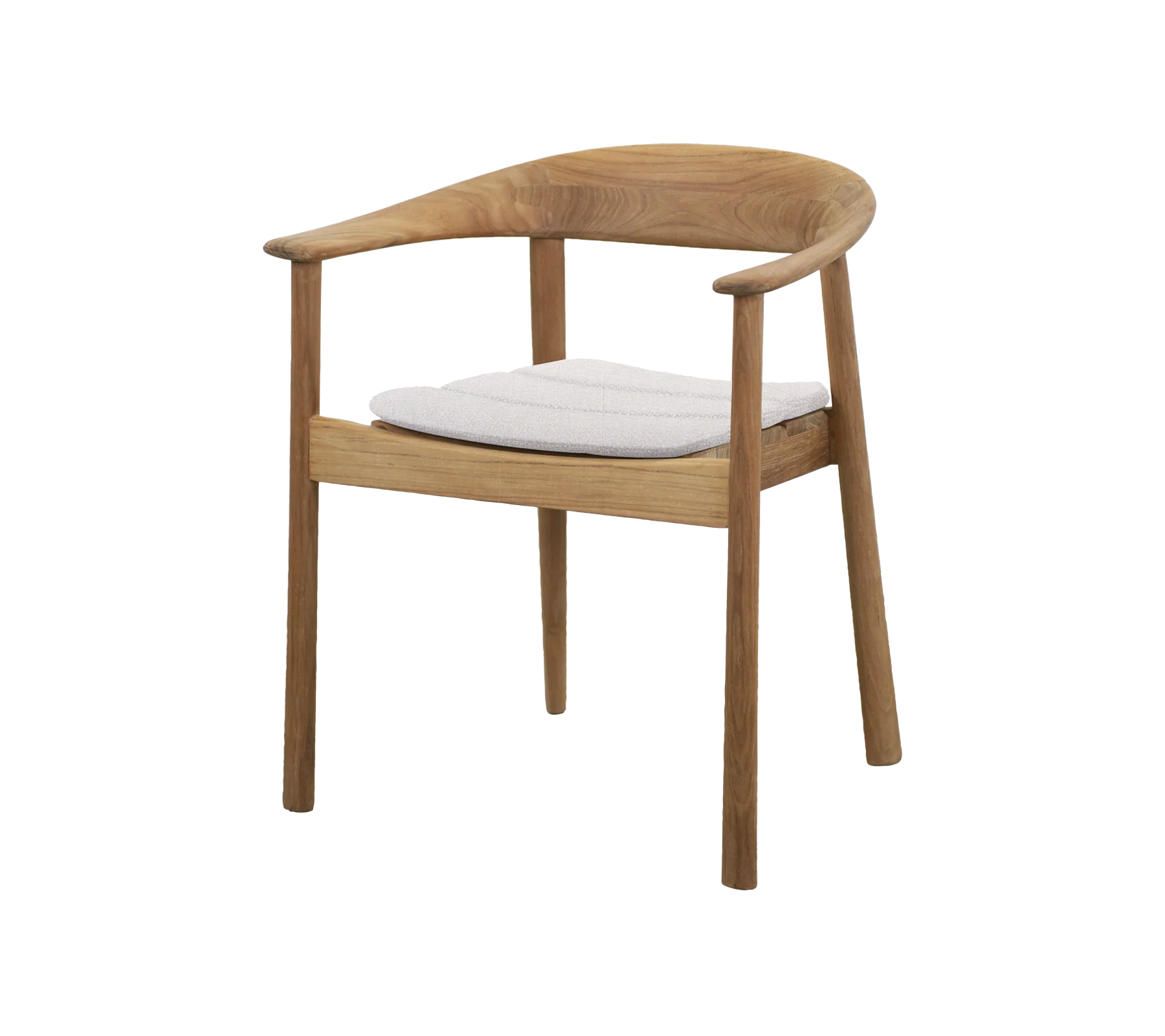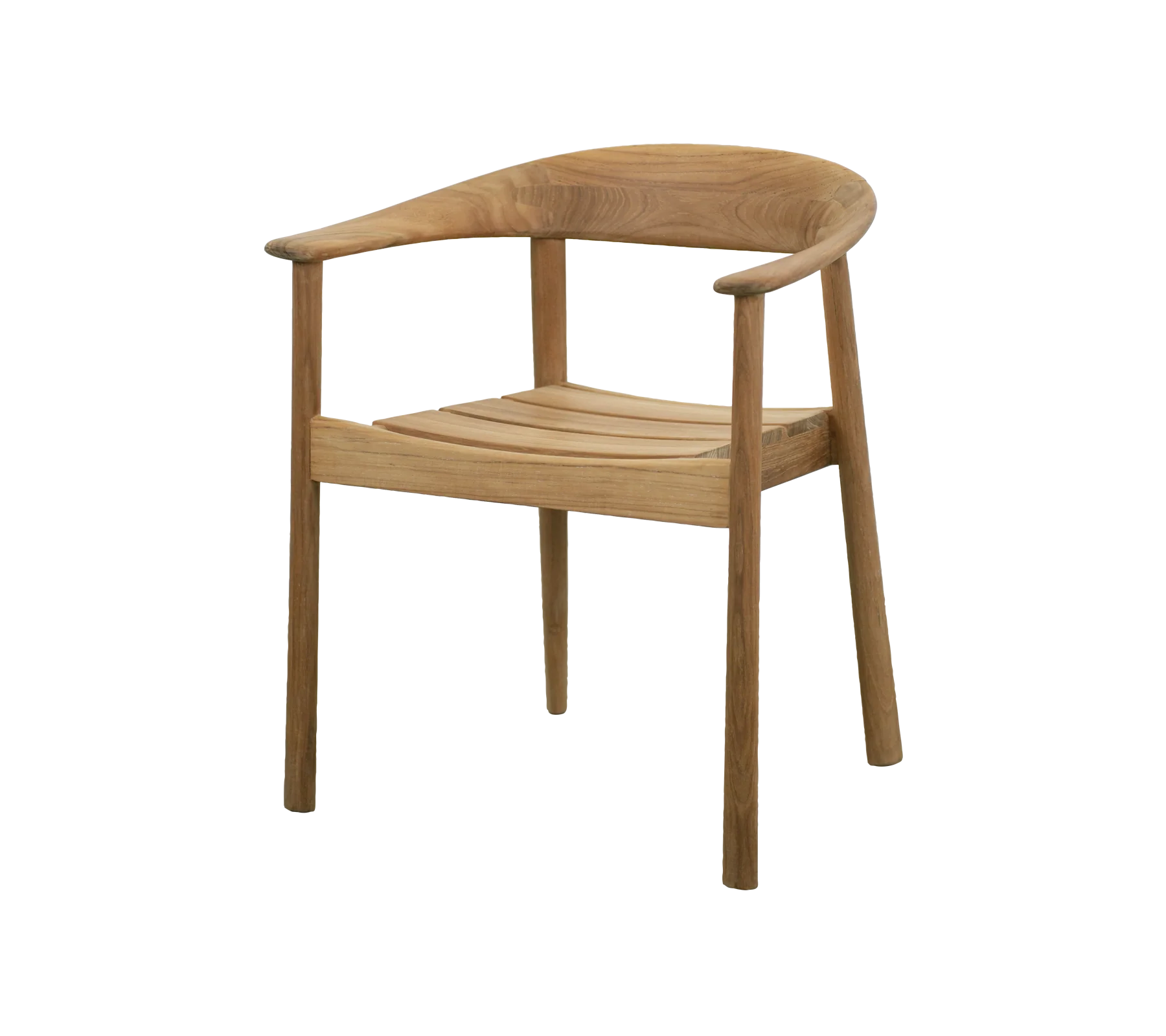 Stolen er fremstillet i certificeret teak, som både tilfører varme og naturlig karakter. Teaktræet er samtidig velegnet til udendørs brug og vil med tiden udvikle en smuk sølvgrå patina, hvis det ikke behandles. Den solide konstruktion gør stolen både stabil og holdbar, samtidig med at den fremstår let i sit design.