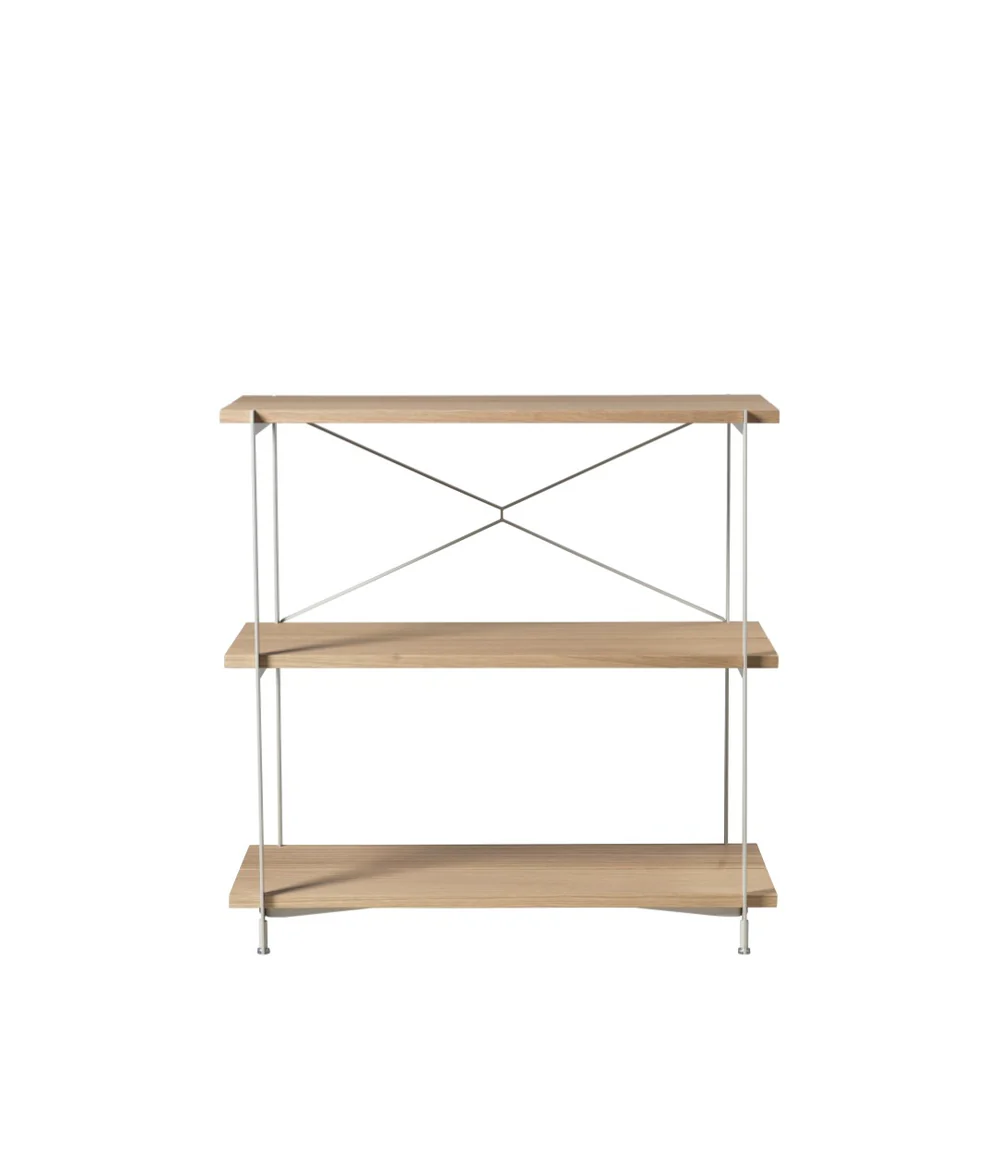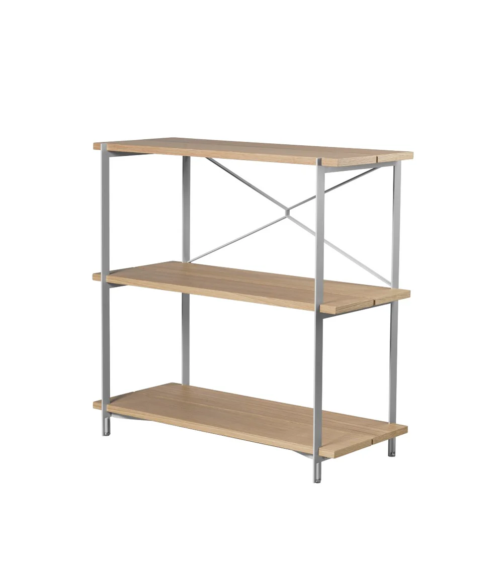 Her får du hylder i ægte egetræsfiner, som fremhæver træets naturlige struktur og dybde. Den lyse eg spiller smukt sammen med den silkeglatte, grå stålramme, der giver reolen et moderne touch. Den visuelle lethed gør, at den aldrig føles tung i rummet. Med en belastning på op til 20 kg pr. hylde har du masser af plads til bøger, nips og dine yndlingsting – uden at gå på kompromis med styrken. Samlingen er nem, så du hurtigt kan tage dit nye møbel i brug.