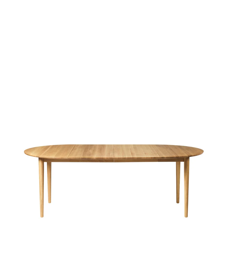 C62E Bjørk spisebord fra FDB Møbler er et tidløst og funktionelt spisebord, der kombinerer klassisk dansk møbeldesign med smart fleksibilitet. Bordet er udført i massiv eg, som sikrer både robusthed og et varmt, naturligt udtryk, der passer ind i mange indretningsstile.